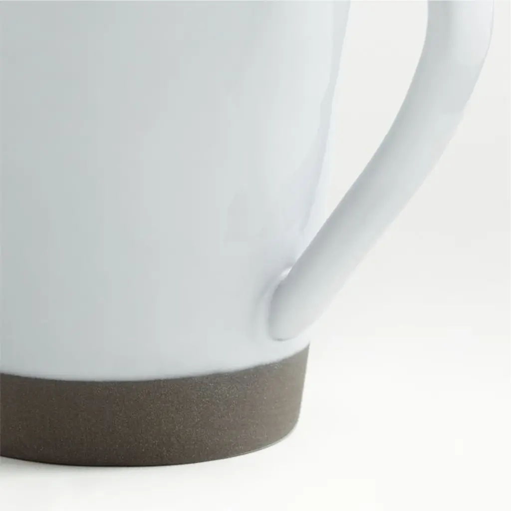 The newest evolution of our coveted Marin dinnerware crafts the collection's signature organic curves with Ecogres®stoneware made of 90% recycled clay. Glazed glossy white, this mug shows off the raw charcoal clay on the base, with subtle hints of grey visible through the glaze. We love the way the smooth, shiny finish contrasts with the exposed stoneware to set a refined-yet-relaxed table in a classic palette. Hand-finished by highly skilled artisans in Portugal to make each one unique, the freeform rim mug stands up to everyday use and dishwasher cleaning. It's artisanal dinnerware designed to be lived withwhether for coffee, tea, tisanes or mulled wineday in and day out.