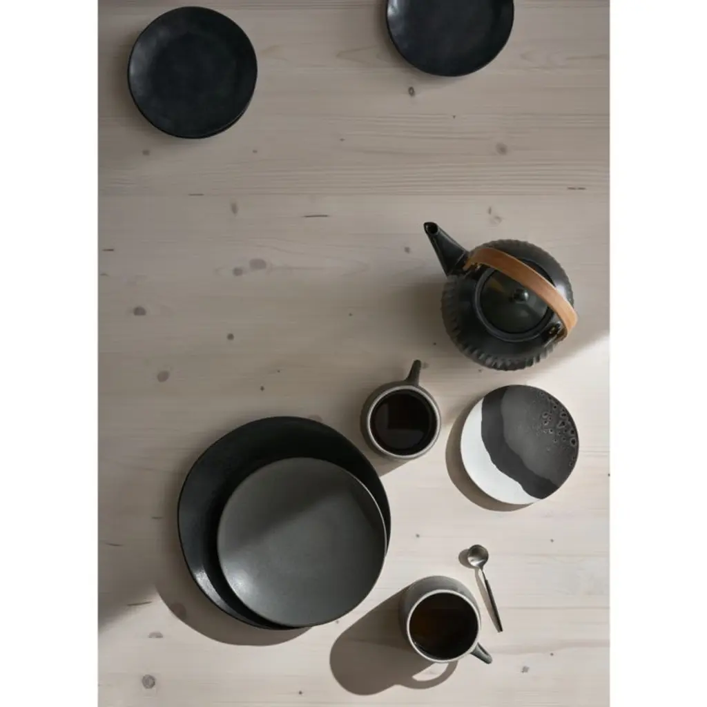 We love the way matte black glaze accentuates the artisanal look of our best-selling Marin stoneware dinnerware collection. Fashioned with organic curves and hand-antiquing along the rim, each dinner plate will have its own distinctive look due to the reactive nature of the glaze.