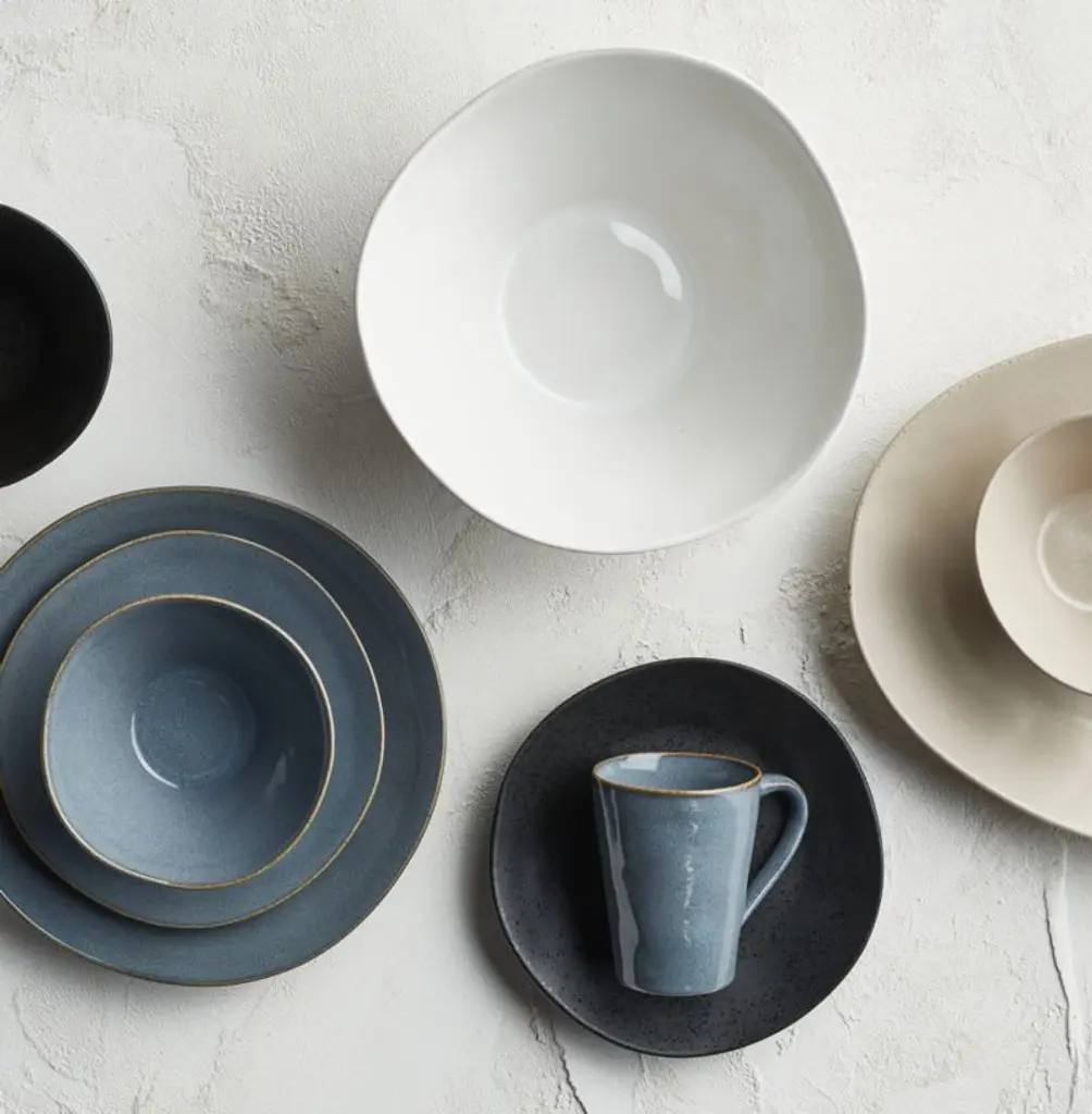 Our bestselling Marin serveware and dinnerware, now in a glossy blue glaze inspired by the Italian coastline of the Mediterranean Sea. The reactive, brown-flecked finish perfectly suits these eight artisanal bowls. Hand-shaped with organic curves and subtle antiquing along the rim, each stoneware bowl will have its own distinctive look. The timeless, livable slate blue harmonizes beautifully with the rest of our Marin collectionwe especially love it with the speckled, sand-hued dishes.