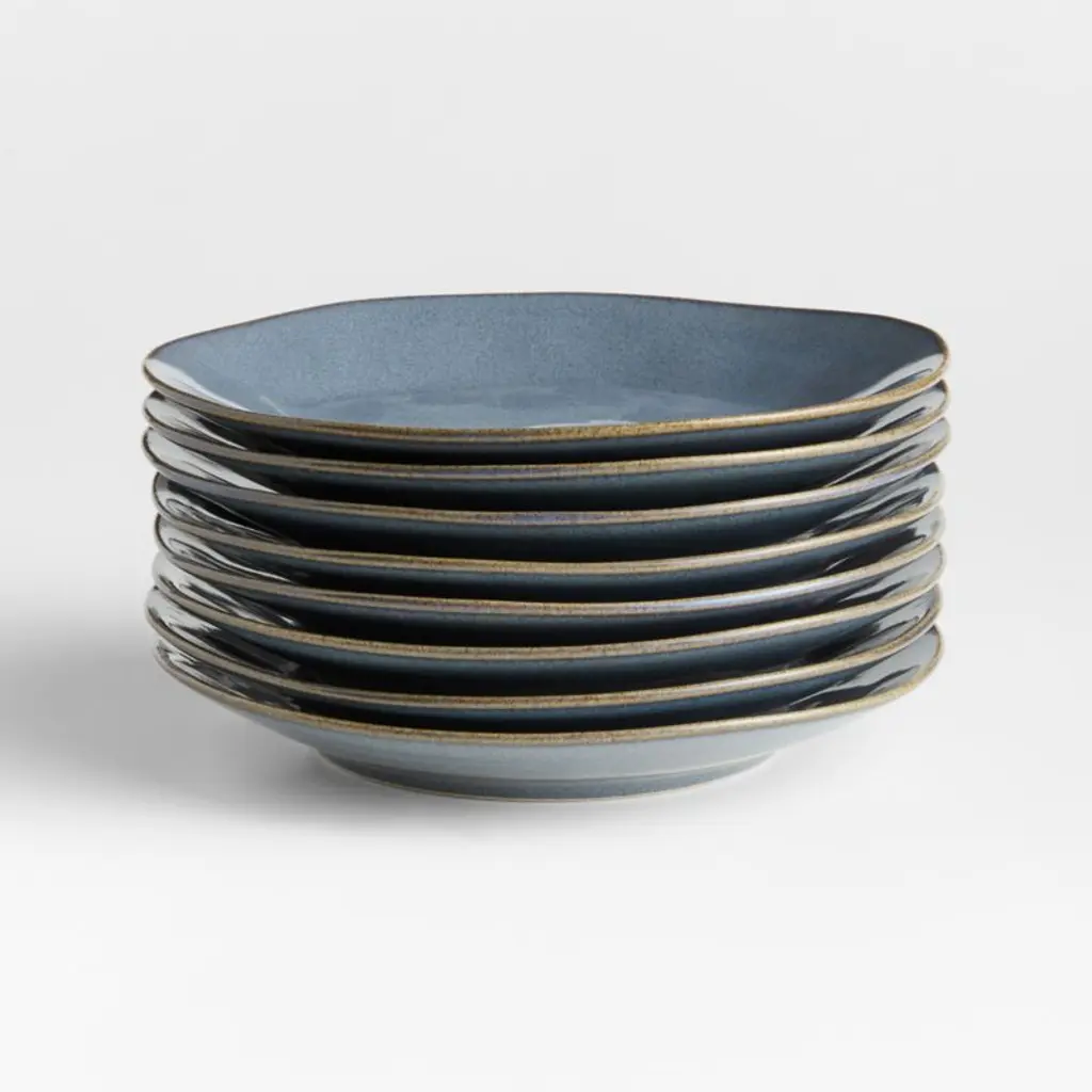 Our bestselling Marin serveware and dinnerware, now in a glossy blue glaze inspired by the Italian coastline of the Mediterranean Sea. The reactive, brown-flecked finish perfectly suits this artisanal salad plate. Hand-shaped with organic curves and subtle antiquing along the rim, each stoneware plate will have its own distinctive look. The timeless, livable slate blue harmonizes beautifully with the rest of our Marin collectionwe especially love it with the speckled, sand-hued dishes.