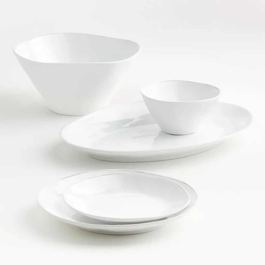 Feel free to set an artisan-inspired table on the patio or at a busy family gathering with the melamine version of our popular Marin stoneware collection. This durable white bowl serves up soup or pasta, fooling the eye with the same organic shape and artisanal antiquing along the rim as its glazed ceramic counterpart. Go solid white with coordinating pieces in the collection or mix and match with grey, dark blue, blue or shibori-patterned pieces for inspiredand carefreeoutdoor or indoor dining.