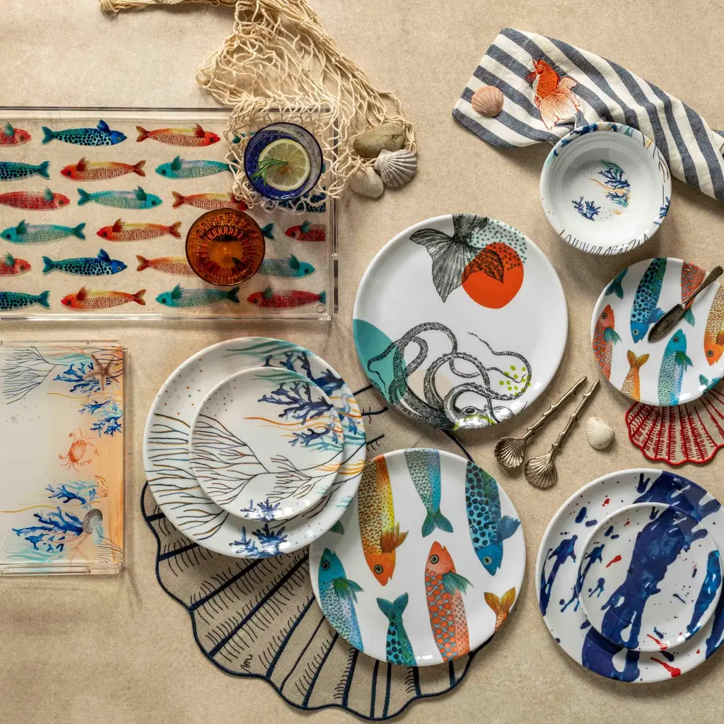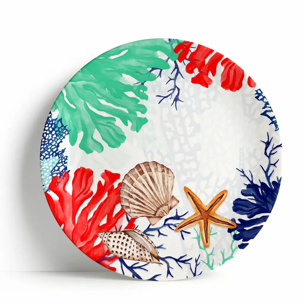 "The contemporary patterns of the unique collection are painted by local artists and produced in limited quantities.You may use these decorative melamine plates as a dessert or appetizer plate on your tables."