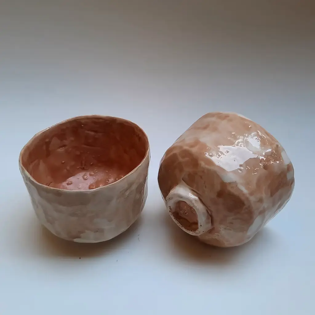 Homaging traditional Japanese sake cups, the two ceramic tea cups composing this set are painstakingly handcrafted to remind of alluring slabs of pink marble. Their ultra-light silhouettes flaunt signature textural irregularities that ensure the uniqueness of each piece, sealed by the hand-painted decoration in dappled pink enhanced by a final glazing step for increased sophistication.