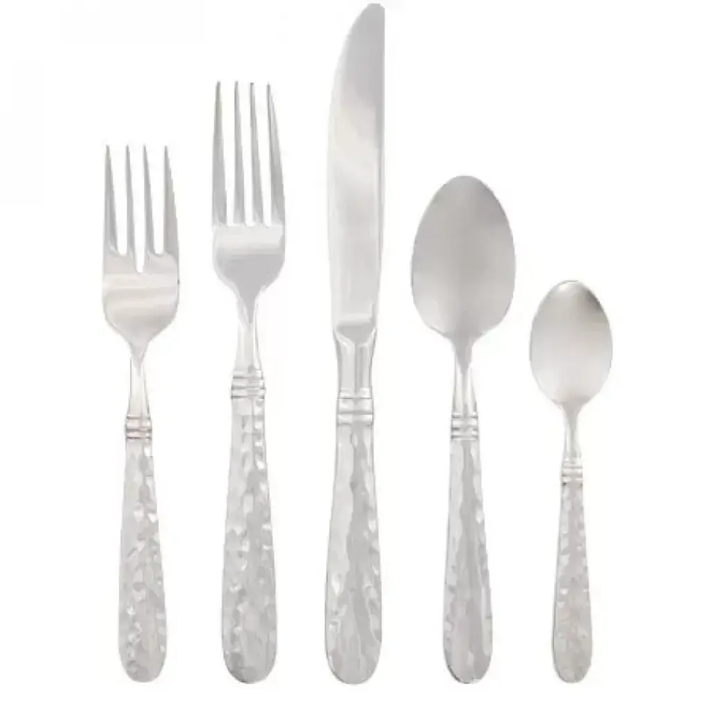 Italian artisans forge the Martellato Cake Knife thus adding hammered detail. The 18/10 stainless steel combined with years of craftsmanship result in a well-balanced, weighty flatware. This hammered flatware set is made in Lumezzane, Italy, by the Bugatti family. Since 1983, Vietri has specialized exclusively in Italian handcrafted ceramics, stainless and pewter flatware, mouth blown glassware, lamps, urns and planters. Families of artisans with 3 or 4 generations of history create these special pieces using centuries-old techniques. The subtle color from a paintbrush and the curving stroke of the artist's hand are never repeated in quite the same way, making each piece truly unique.