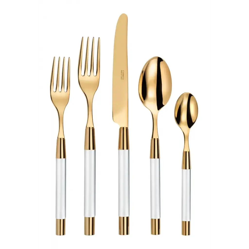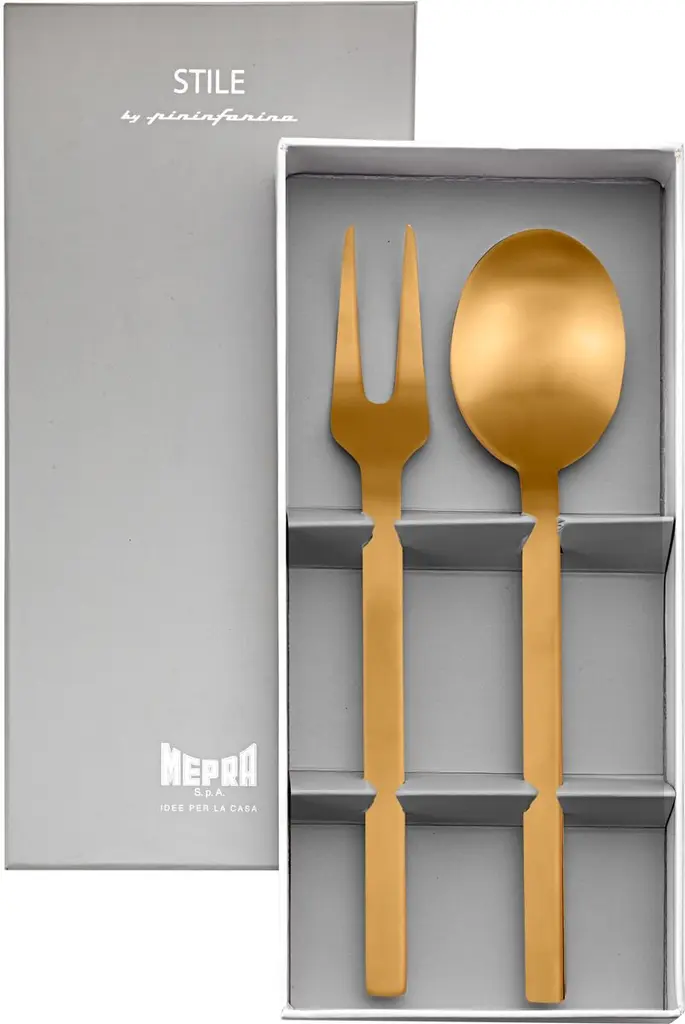 Italian artisans forge each piece of the Martellato Gold Serving Set thus adding hammered detail. The 18/10 stainless steel combined with years of craftsmanship result in a well-balanced, weighty flatware. This hammered flatware set is made in Lumezzane, Italy, by the Bugatti family. Since 1983, Vietri has specialized exclusively in Italian handcrafted ceramics, stainless and pewter flatware, mouth blown glassware, lamps, urns and planters. Families of artisans with 3 or 4 generations of history create these special pieces using centuries-old techniques. The subtle color from a paintbrush and the curving stroke of the artist's hand are never repeated in quite the same way, making each piece truly unique.