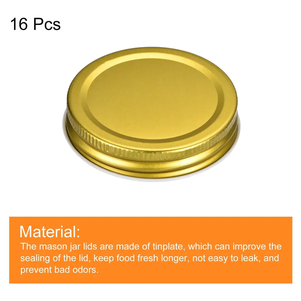 Mason Jar Lids, 16 Pcs Tinplate Canning Lids Regular Mouth Leak Proof - Gold - 70mm - Gold - 70mm