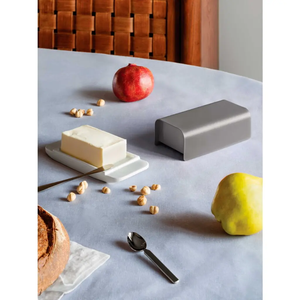 Alessi’s Mattina butter dish helps to keep butter longer at the right temperature while enjoying breakfast and other meals. The butter dish was created by the Swiss design studio BIG-GAME with a mission to fill everyday routines with indulgence. The sleek and stylish butter dish features a white porcelain tray and a colored steel lid.
