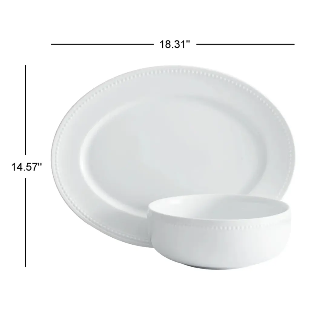 Max Beaded 2-Piece Porcelain Serving Bowl And Platter Set