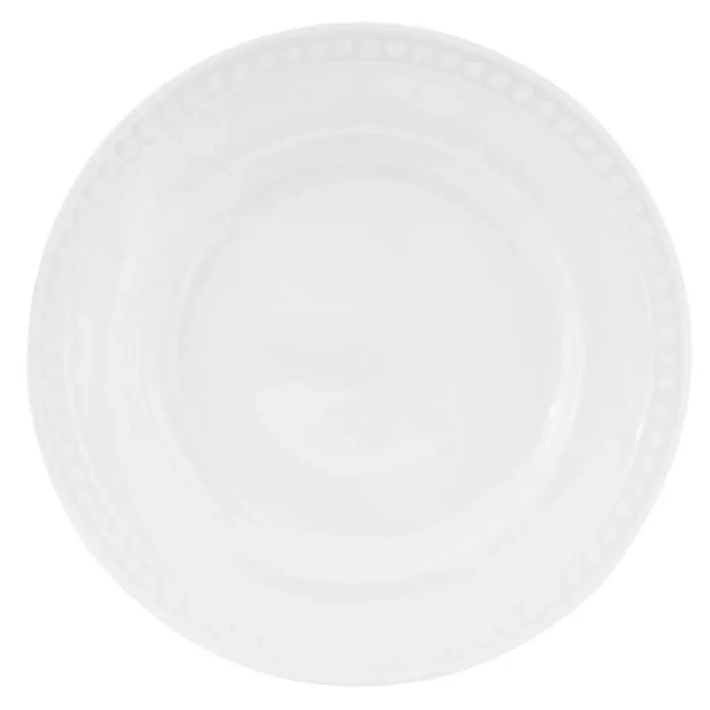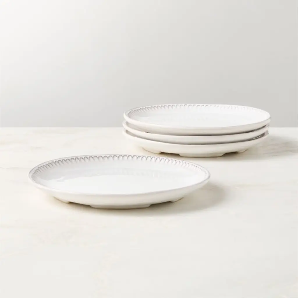 Elegant and understated, this set of 4 Max salad plates by Fitz and Floyd is beautifully crafted of chic white porcelain bordered with a subtle, raised bead pattern. Perfect for everyday use or formal entertaining, these salad plates will match any home decor.