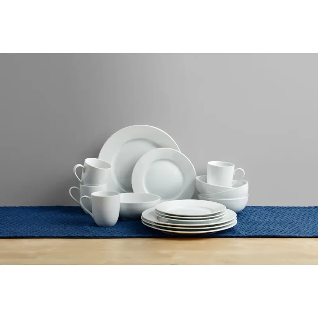 This sophisticated 16-Piece Max Classic Rim Dinnerware Set adds understated style to any dining occasion. Traditionally shaped pieces with wide rims in sleek white porcelain give your tabletop a fresh, elegant look. Perfect for everyday use or formal entertaining, this collection will match any home decor.