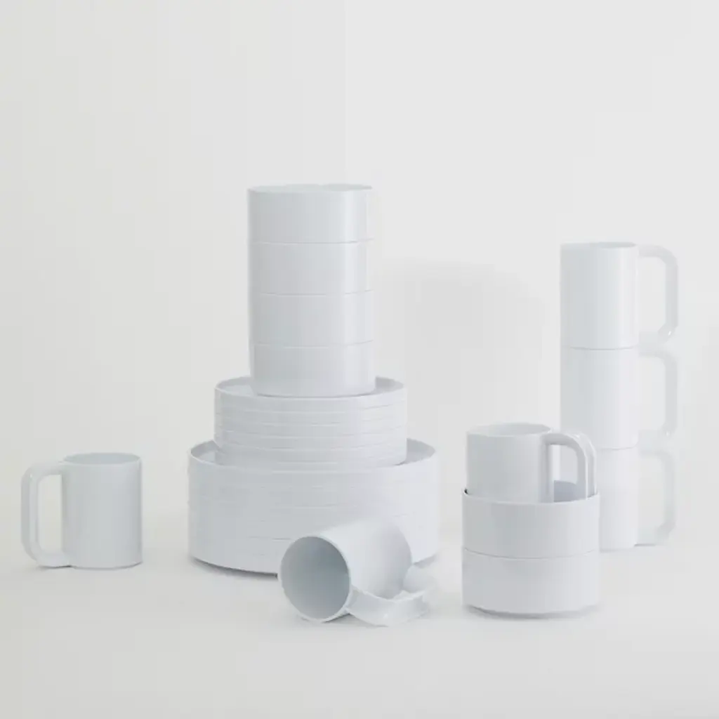 The Max Dinnerware, Set of 18 from Heller brings joy to every table with its crisp shapes and vibrant colors, transforming ordinary days into celebrations. Designed by Lella and Massimo Vignelli, this contemporary collection is stackable, colorful, and fun. Loved worldwide, it maximizes storage space with a sleek, intelligent design that won the prestigious Compasso d’Oro award.