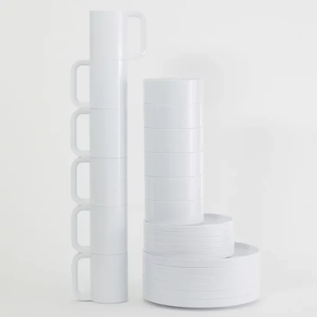The Max Dinnerware, Set of 24 from Heller brings joy to every table with its crisp shapes, glossy surfaces, and clean modern silhouettes. Designed by Lella and Massimo Vignelli in 1964, this iconic collection is celebrated worldwide for its intelligent aesthetic. Stackable and simple, each piece fits securely and maximizes storage space, making it a practical and stylish addition to any modern gathering space.