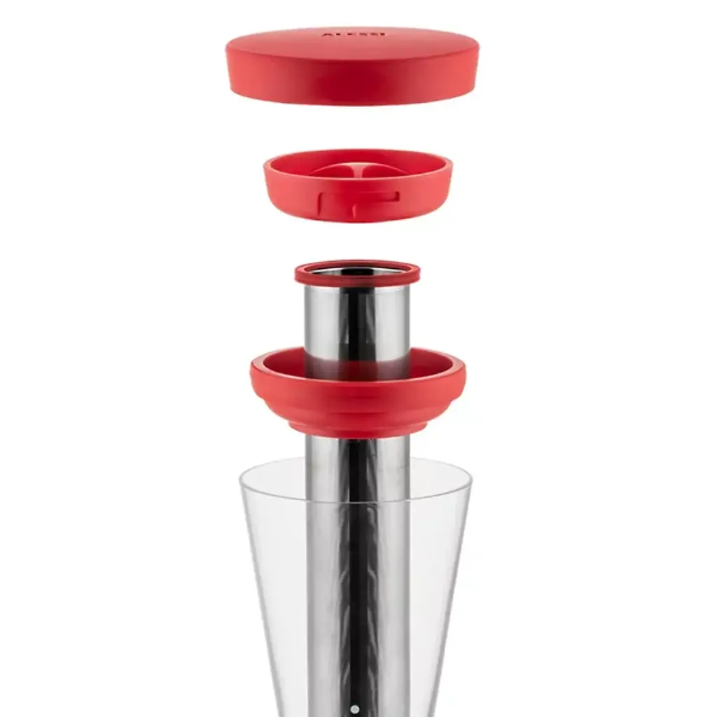 Make each morning wake-up truly special with fantastic coffee from the inspired Mazagran Cold Brew Coffee Carafe from Alessi. An airy mix of Italian refinement and contemporary simplicity, it springs from the mind of Giulio Iacchetti, setting a vented stainless steel cylinder inside a contoured borosilicate glass sleeve with a flared upper section for added grip. A thermoplastic resin cap completes the carafe, keeping the brewing confined and creating a flavorful and impactful taste profile unique to the cold brew process.