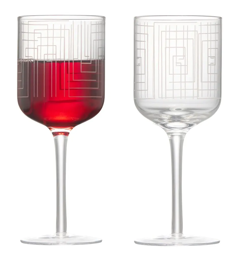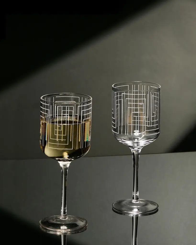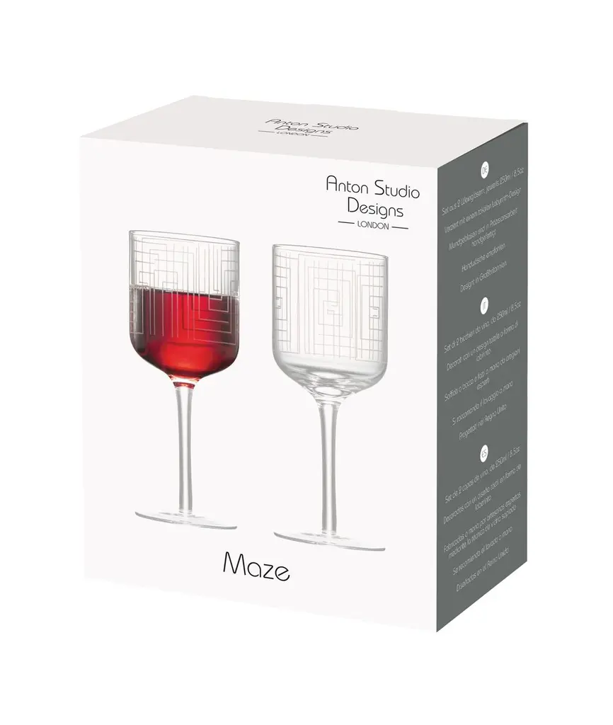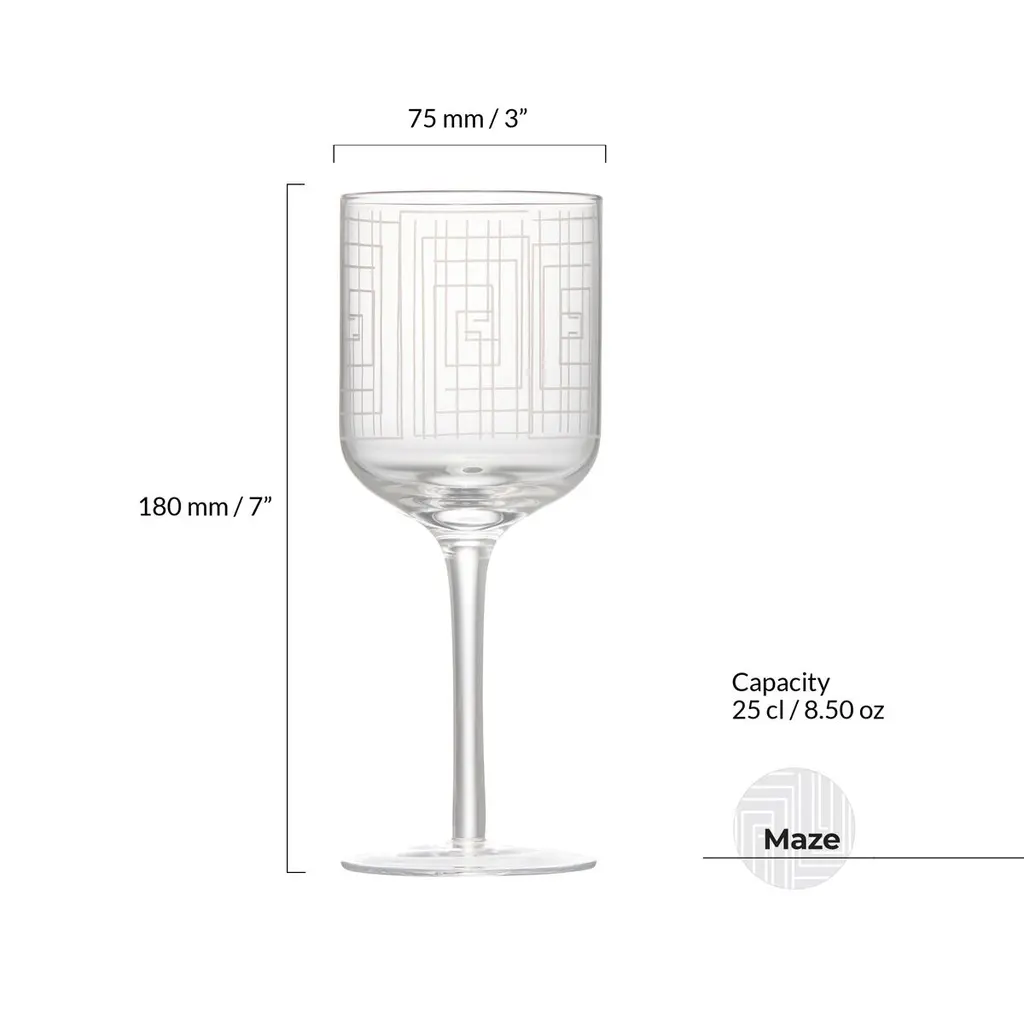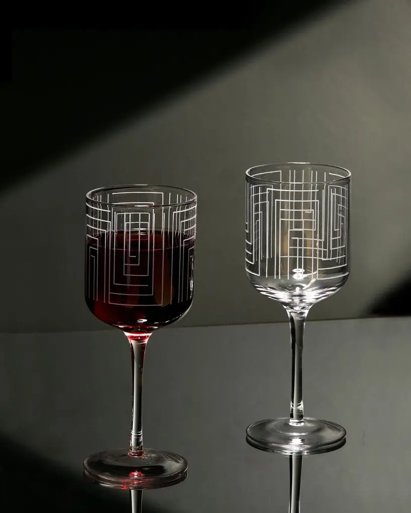 The Maze Wine Glasses bring contemporary sophistication to your table with their distinctive maze-like textured design. Perfect for red or white wines, they add depth and character to every sip, making them ideal for both casual and formal dining. Mouth blown and handmade by skilled craftsmen.