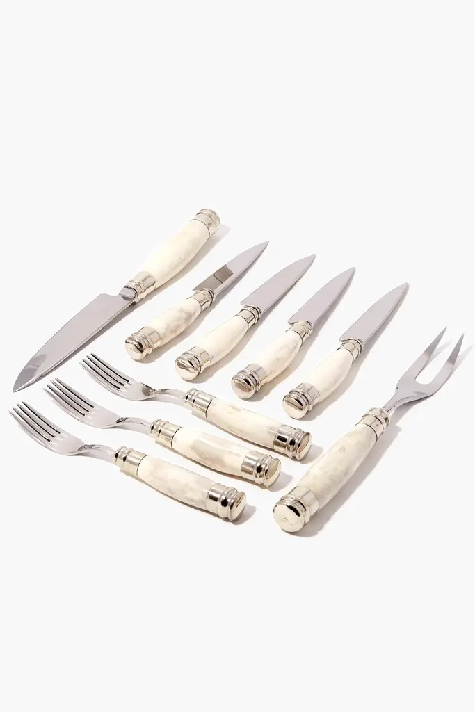 Meat Cutting Knifes, Set With Box, Polished Horn & Alpaca Silver
