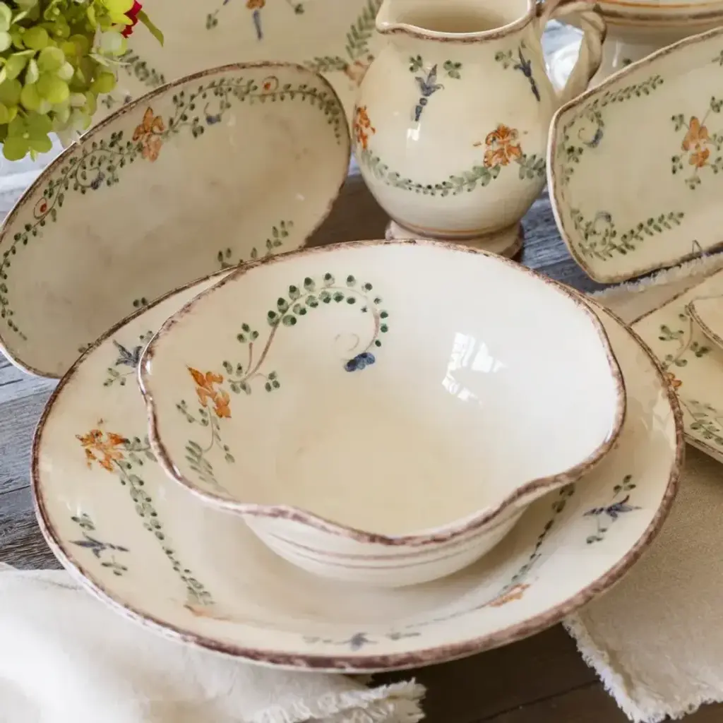 Before the Renaissance (Rinascimento in Italian), there were the Medicis, the dynastic Italian banking family that financed so many of the period’s transformational achievements. It is a fitting name for this popular collection that has been part of Arte Italica for decades. Its shapes and subtle colors create an old world feel. Unmistakably handmade and hand painted in soft cream shades accented with an interpretation of the Medici's beautiful, signature, giglio (fleur-de-lis) and vine motifs in rich hues of green, blue and orange. Italian ceramic, Hand made in the Umbria Region of Italy. Founded in 1997 by Ann Skidmore, Arte Italica is a story of one woman's passion for Italian history, culture, art, and vintage pewter. Today, Arte Italica is one of the leading importers of European tabletop and home accessories products in the United States. Every piece is handmade and designed so that they can easily be mixed and matched to create a timeless, classic, and effortless look.