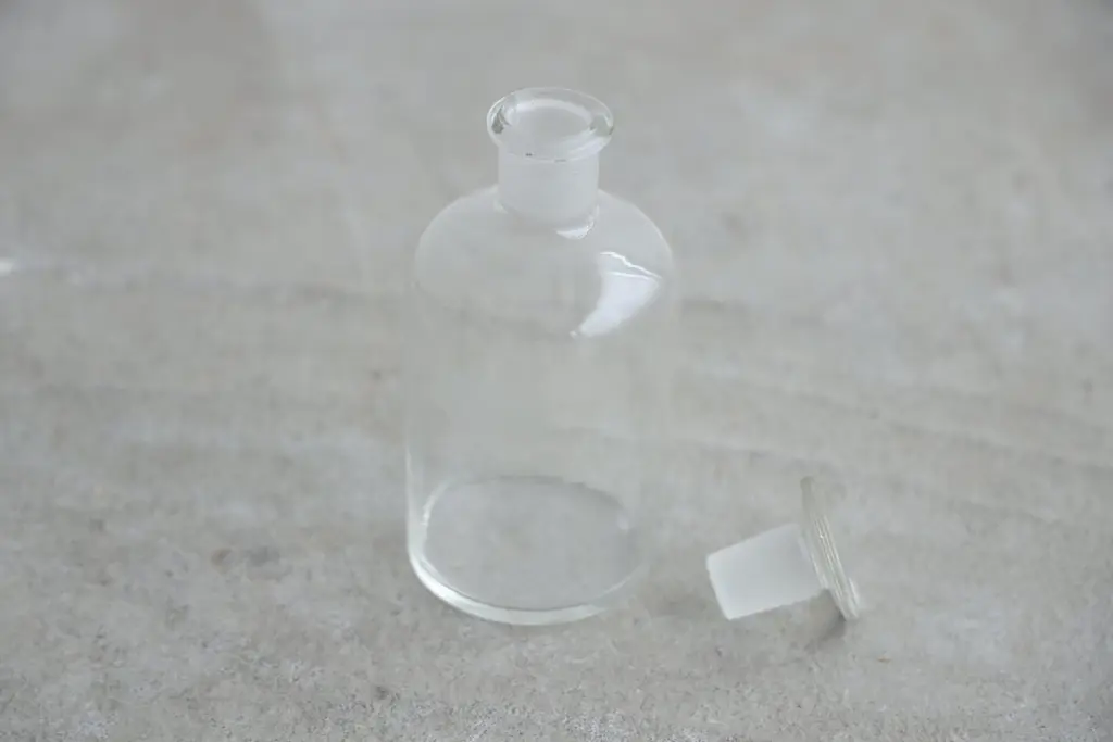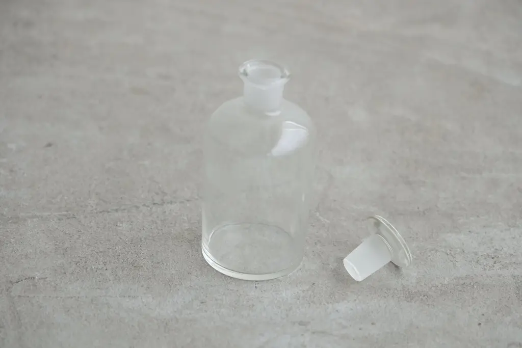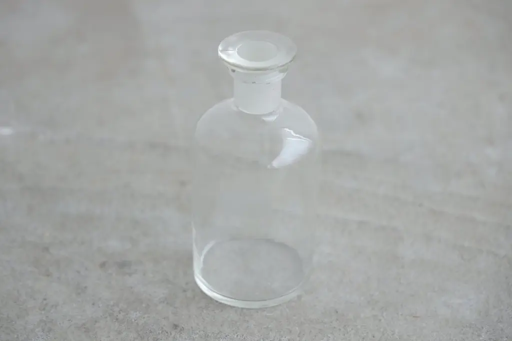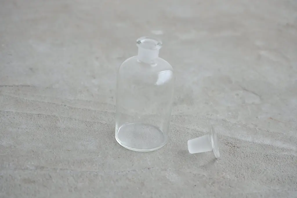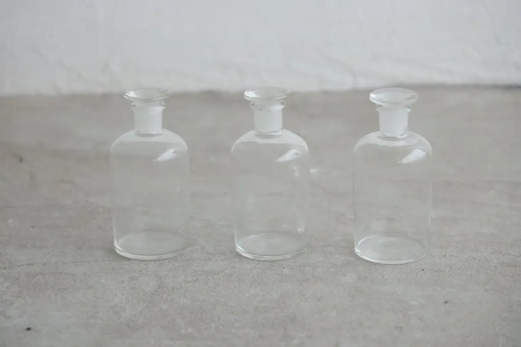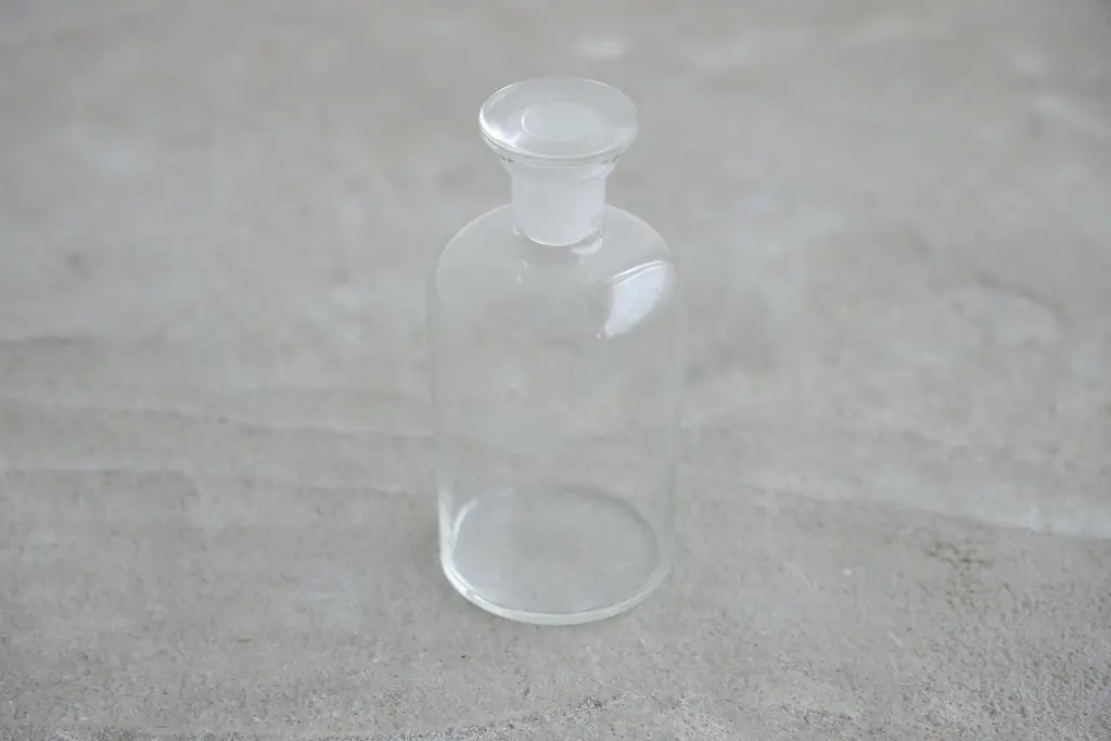 This is an antique glass medicine bottle from the early Showa period.A precious, unused item.It can be used for a variety of purposes, such as a vase or a small item holder. It is also recommended as an interior accent. The simple yet sophisticated design will blend in with any space.Weight:300g / 1 piece