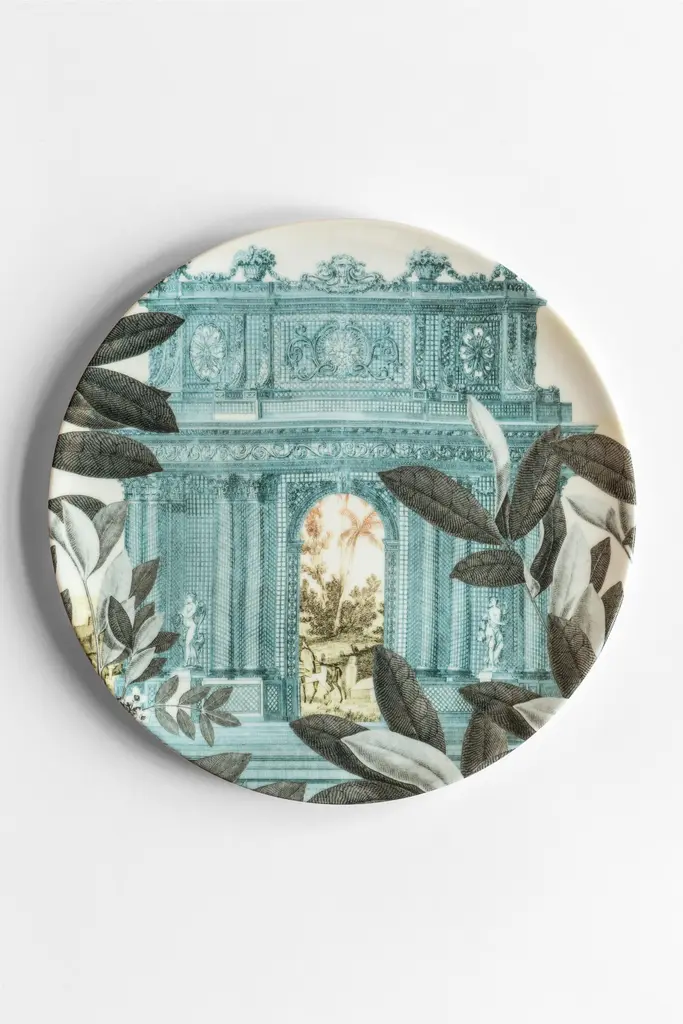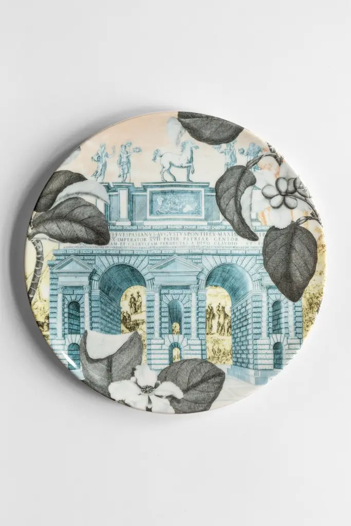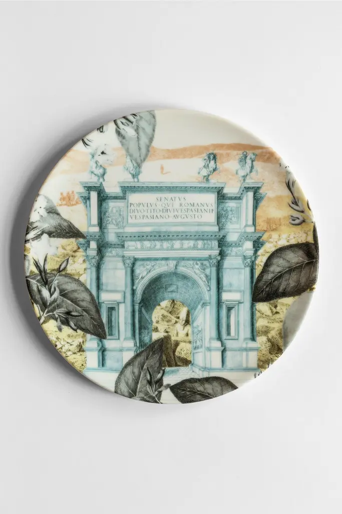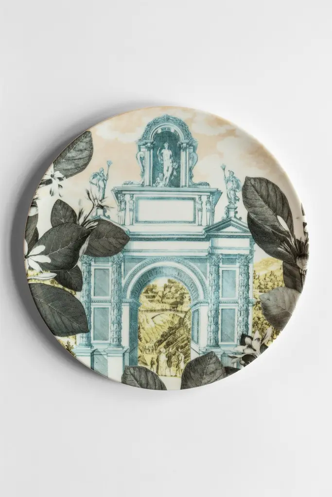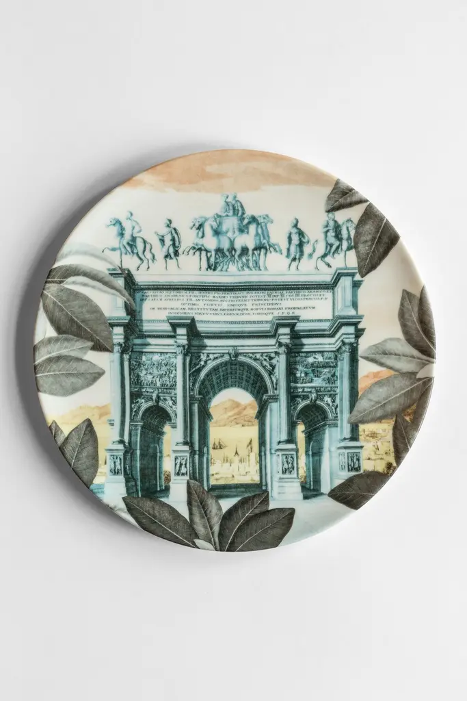 The Mediterraneo collection is the result of Vito Nesta’s reflection on the line between reality and fantasy. The architectures of the doors depicted on the plates arise from technical drawings of monuments never realized but that inspired those that are present today in many Italian cities, from Milan to Rome. The same contrast is present in the setting, the doors portrayed at sunset are in fact surrounded by scenes inspired by colors and scents of North Africa.