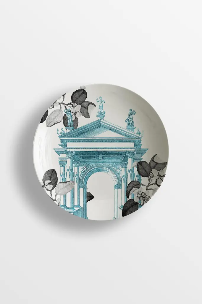 The Mediterraneo collection is the result of Vito Nesta’s reflection on the line between reality and fantasy. The architectures of the doors depicted on the plates arise from technical drawings of monuments never realized but that inspired those that are present today in many Italian cities, from Milan to Rome. The same contrast is present in the setting, the doors portrayed at sunset are in fact surrounded by scenes inspired by colors and scents of North Africa.6 soup plates.