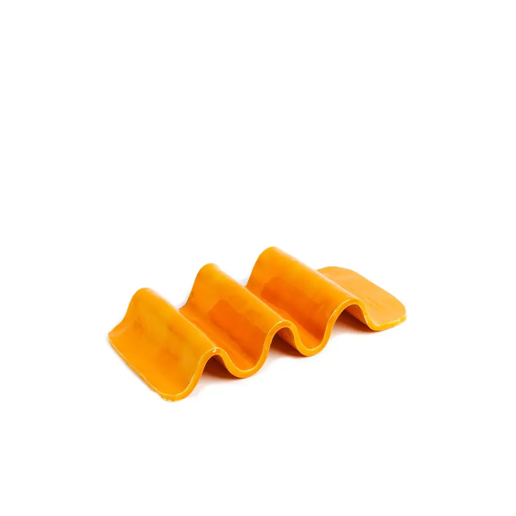 Wavy plate is inspired by nature and energy. The beauty of imperfection and the snake movement are the references for its creation. This plate was created by Mallorcan Artist Laura Rubio Bañón for tacos but it can be use in different ways. At trobar we serve our tro-taco´s on these taco wiggles. MATERIALS: Glaze & ceramic Signed by Maker