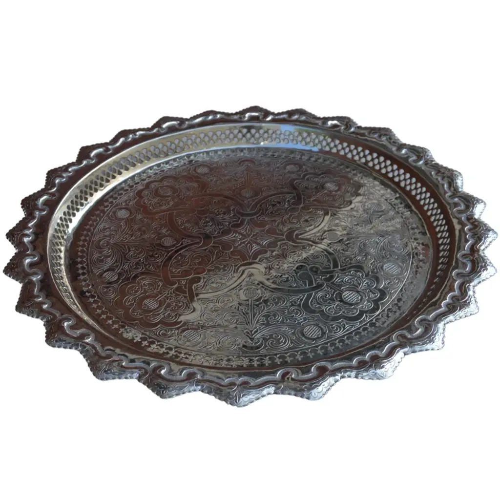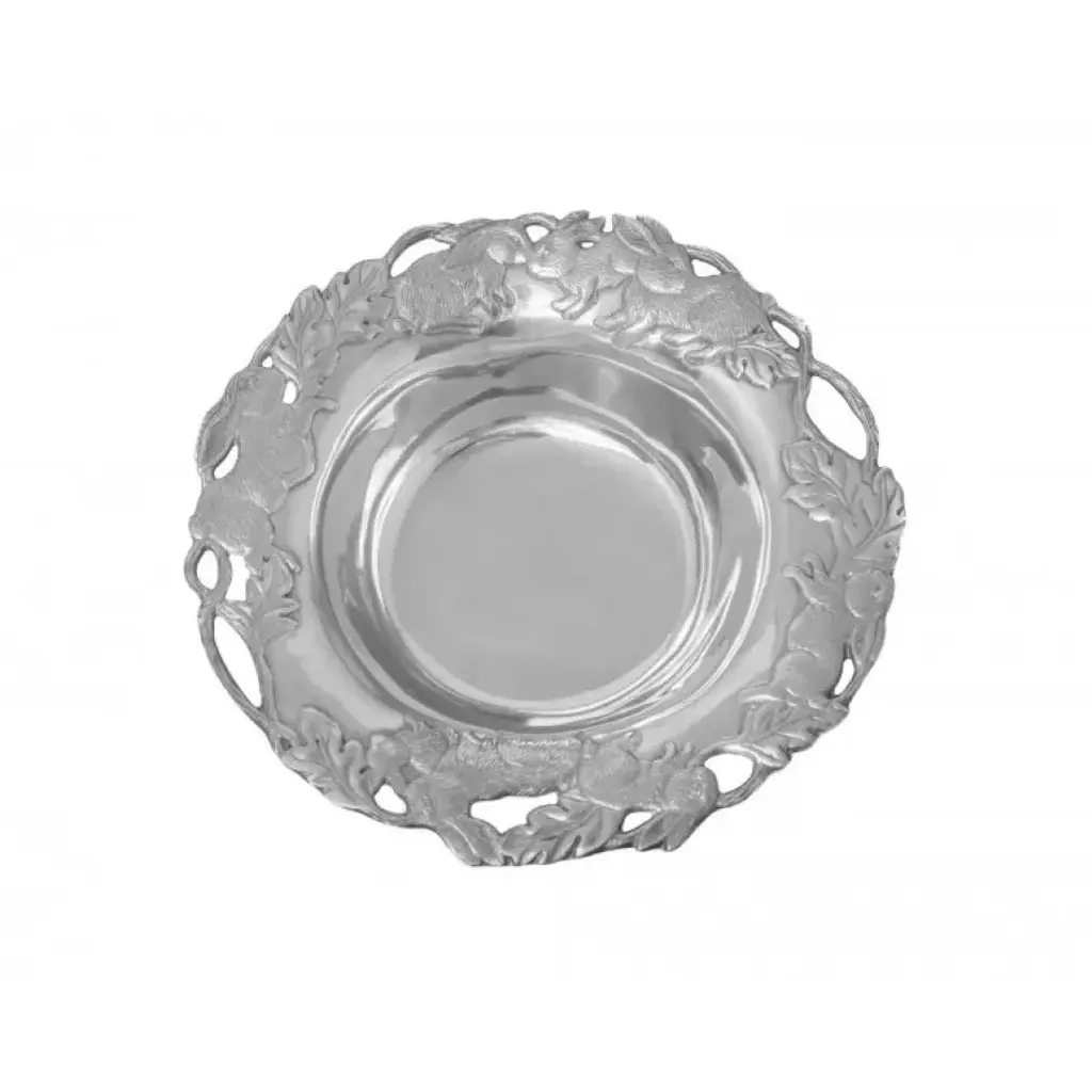 The Ceselli line features silver items that are intricately chiseled with ornate decorative elements. This medium-sized oval serving platter features an elegant, thick, embellished border. The brand is famous for its tradition of processing precious metals by master craftsmen, creating unique, one-of-a-kind pieces rooted in tradition with a modern edge.