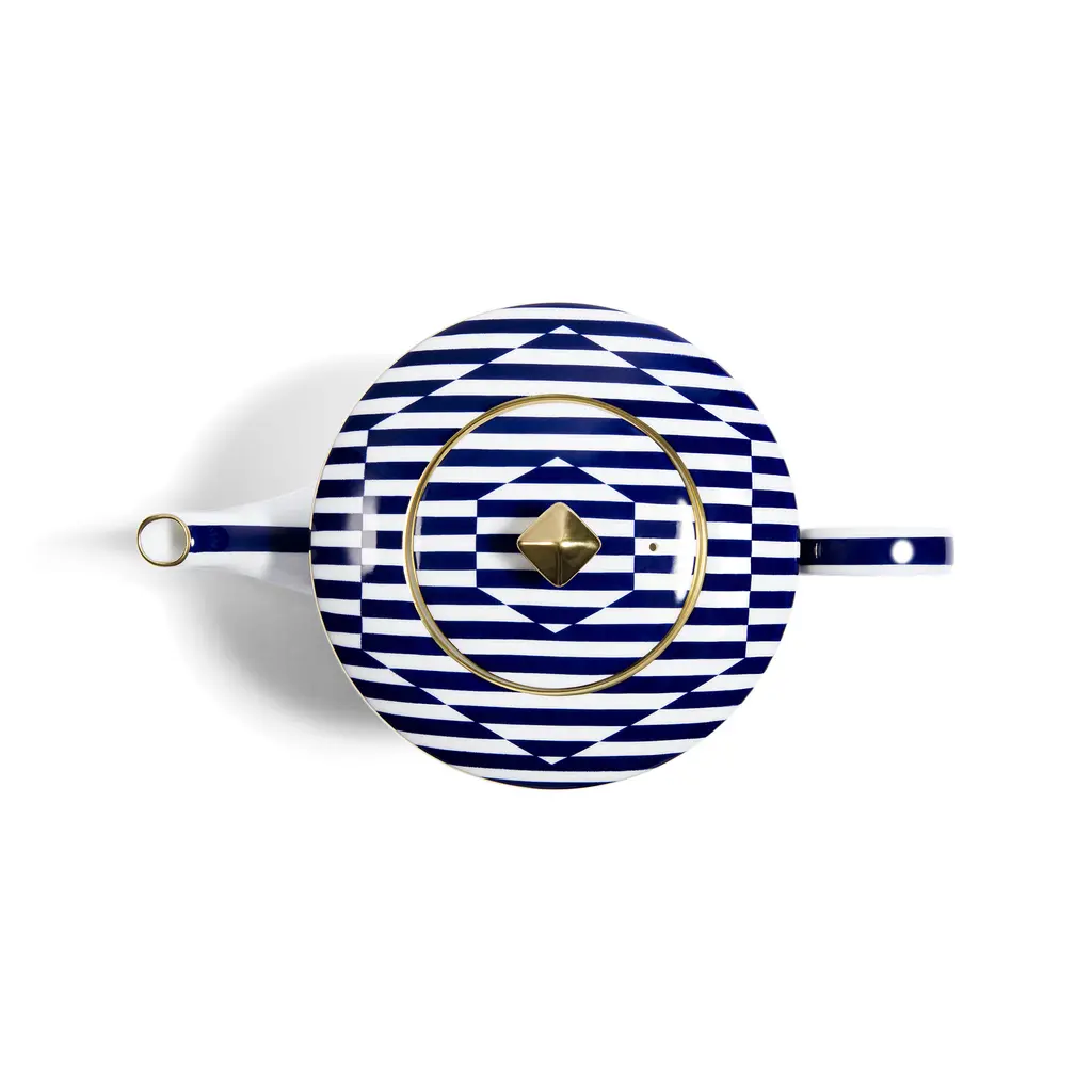 The best designs have a good story behind them. The Superstripe Medium Teapot is no exception. Made in a collaboration between ceramic and tableware designer Richard Brendon and cutting-edge pattern innovators PATTERNITY, the Superstripe line celebrates British culture and craftsmanship through a contemporary design that also references the Age of Enlightenment. A work of art, the Superstripe Medium Teapot boasts cobalt blue stripes in a captivating pattern. The multi-layered design references the layering of new, innovative ideas in the 17th-century. Golden accents add a stylish touch to the design. Seen from above, the Superstripe Medium Teapot fascinates with a pattern that seems to create an optical illusion. A perfect solution to create a focal point at the dining table. Made by hand by the finest craftspeople from Stoke-on-Trent, England.