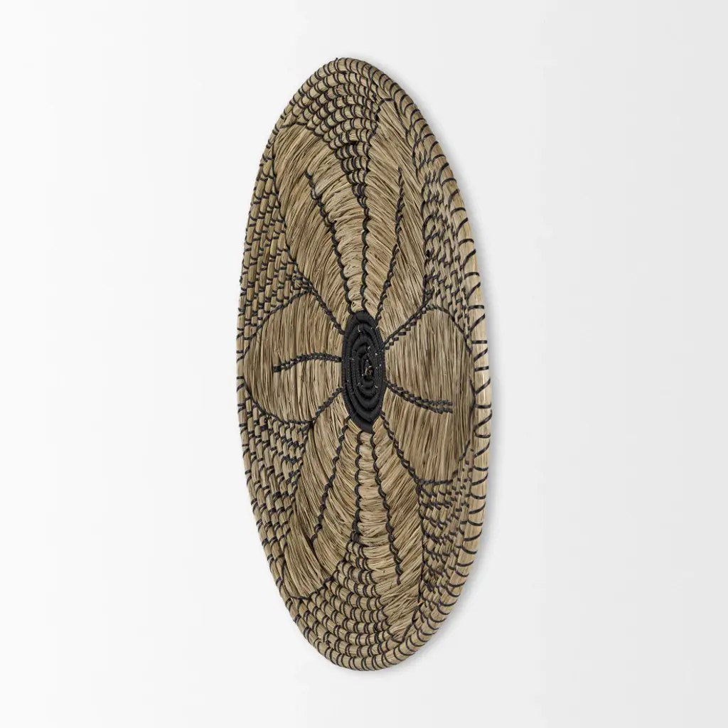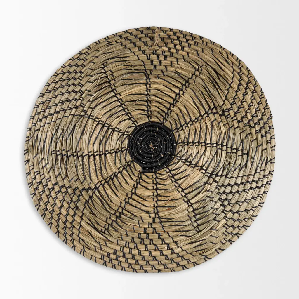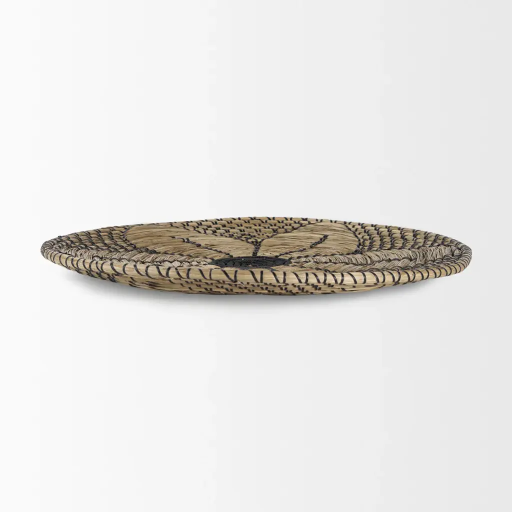 Mekhi Light Brown Seagrass With Black String Round Wall Hanging Plate