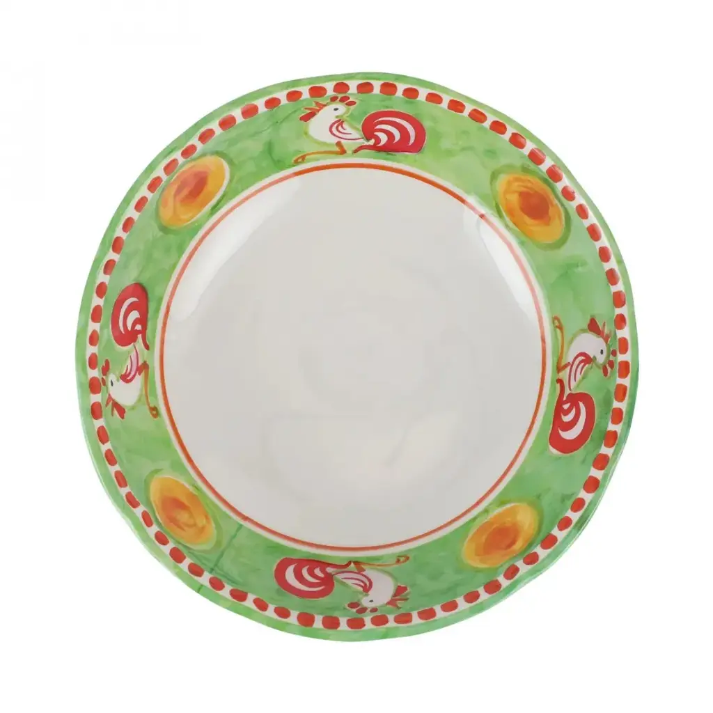 The Melamine Campagna Gallina Large Serving Bowl features plucky, handpainted roosters on a soft green background, and its durable material makes it a perfect serving piece for outdoor gatherings. Since 1983, Vietri has specialized exclusively in Italian handcrafted ceramics, stainless and pewter flatware, mouth blown glassware, lamps, urns and planters. Families of artisans with 3 or 4 generations of history create these special pieces using centuries-old techniques. The subtle color from a paintbrush and the curving stroke of the artist's hand are never repeated in quite the same way, making each piece truly unique.