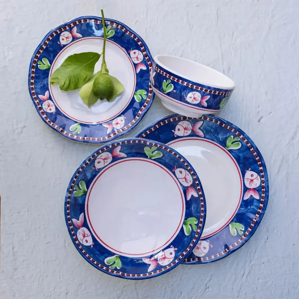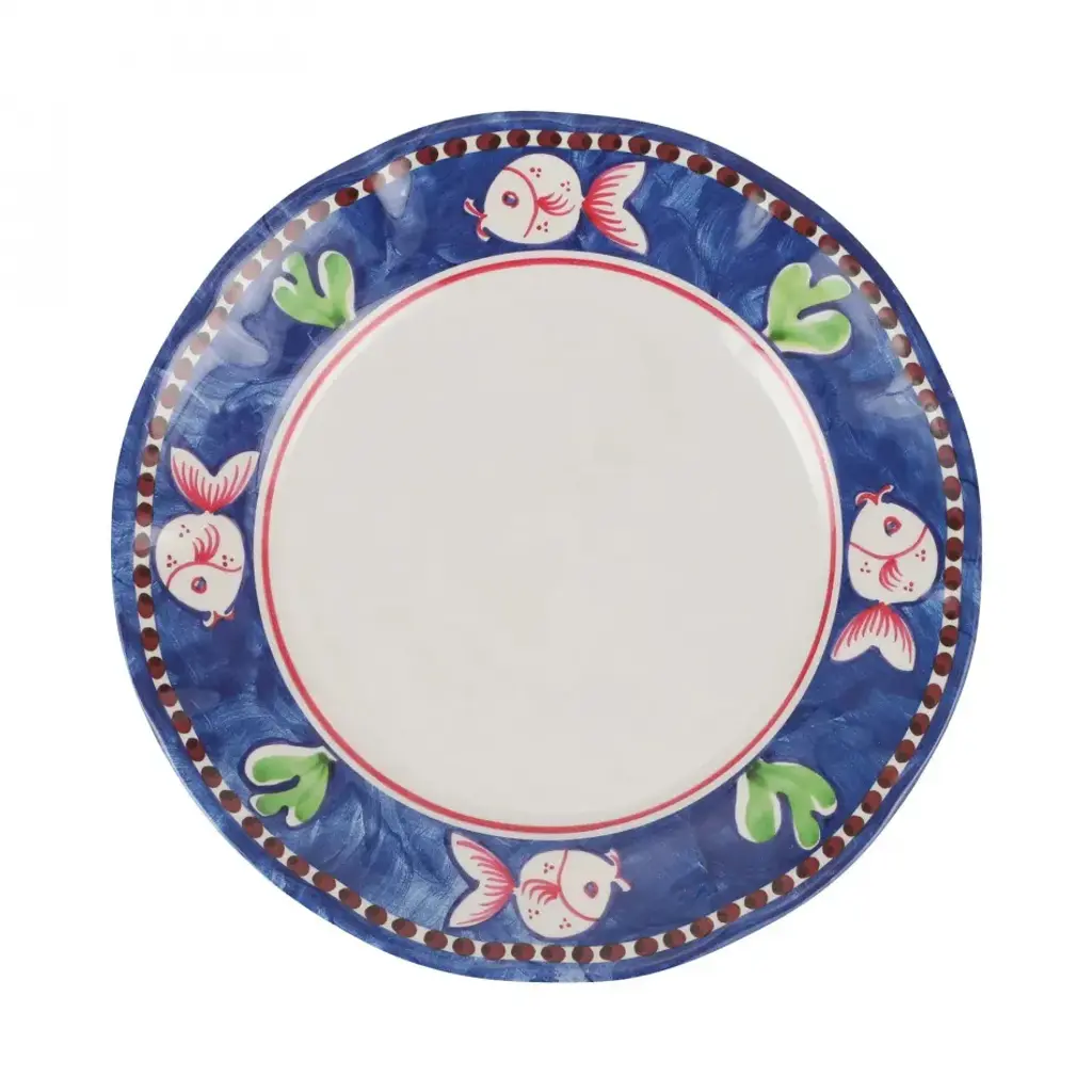 The Melamine Campagna Pesce Large Serving Bowl features happy-looking handpainted fish swimming in a deep blue sea, and its durable material makes it a perfect serving piece for outdoor gatherings. Since 1983, Vietri has specialized exclusively in Italian handcrafted ceramics, stainless and pewter flatware, mouth blown glassware, lamps, urns and planters. Families of artisans with 3 or 4 generations of history create these special pieces using centuries-old techniques. The subtle color from a paintbrush and the curving stroke of the artist's hand are never repeated in quite the same way, making each piece truly unique.