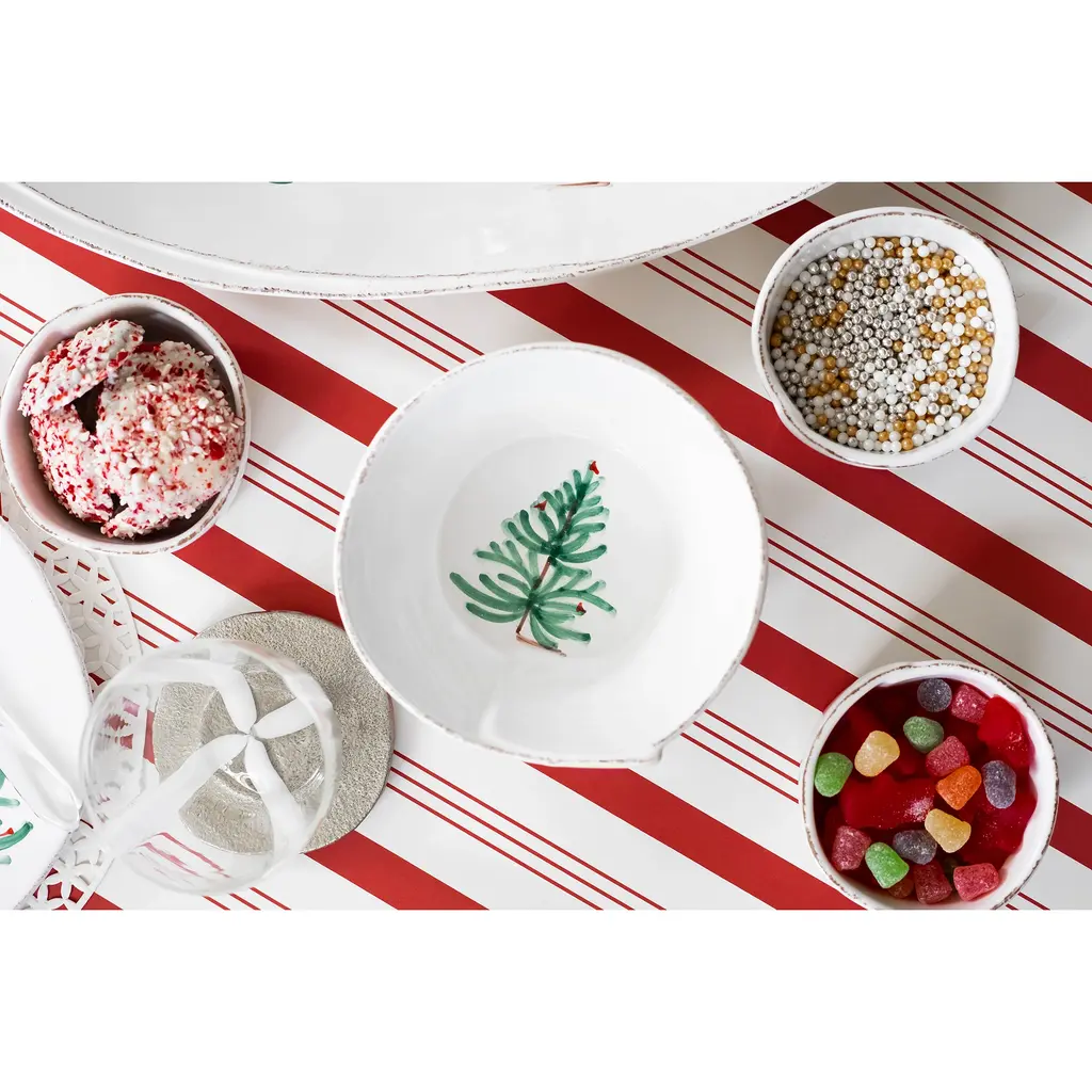 Start a new tradition with the Lastra Holiday Collection from VIETRI. Handpainted fir trees and red birds drift across the fresh white canvas of each durable melamine piece, bringing whimsical elegance to the organic shapes.