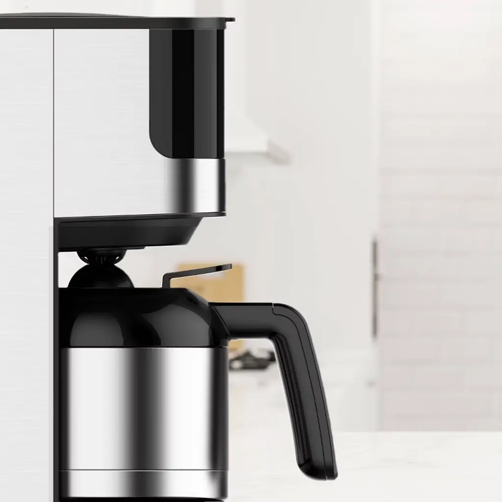 From filling the water tank to your first sip, the Melitta® Aroma Tocco™ Drip Coffee Maker with thermal carafe allows you to take in the process of brewing coffee. Space savvy in size, this stylish machine has a minimized footprint for kitchens of all sizes. Large and bright LED with Touch Control also takes into account your needs and surroundings; no physical buttons that trap kitchen dirt in gaps; it is really simple to use and easy for cleaning.