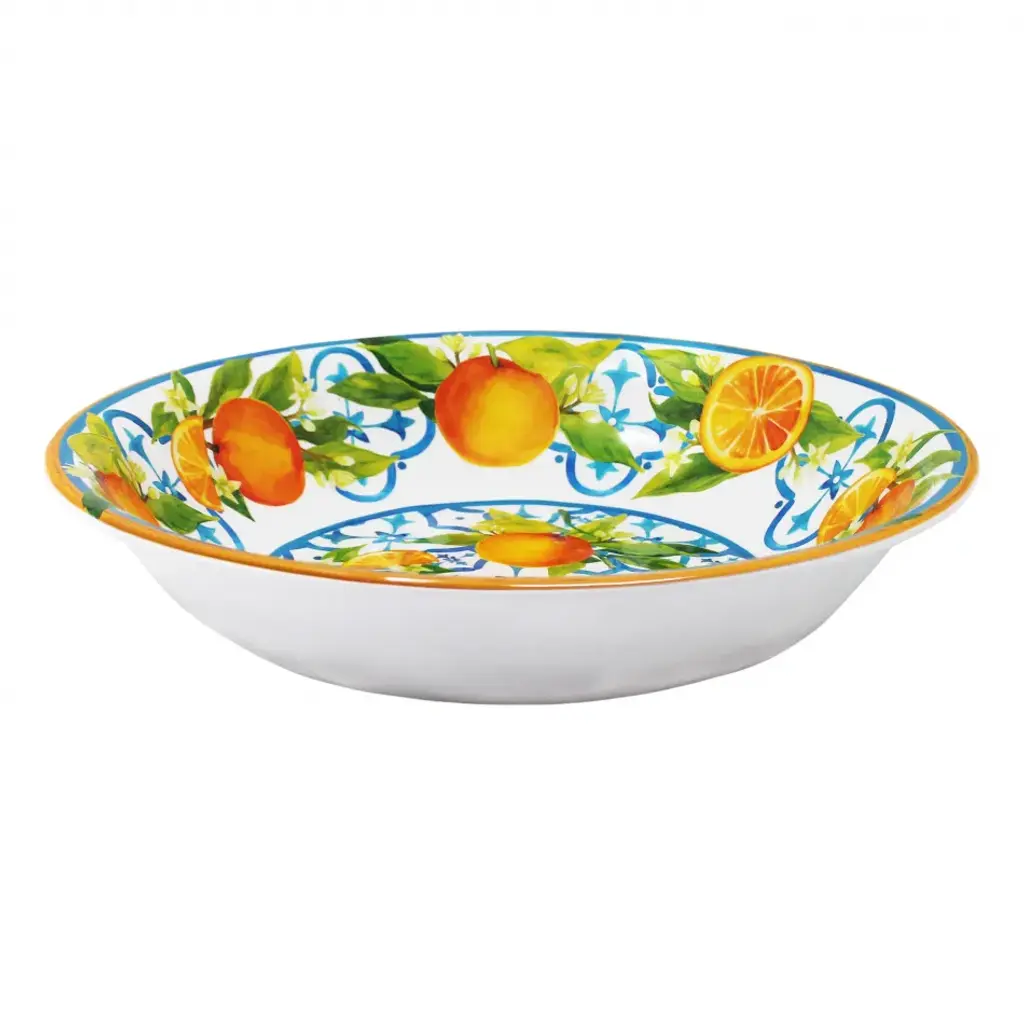 Perfect to serve a fresh salad or a cold pasta dish on a sunny summer day, this splendid salad bowl is entirely handcrafted of majolica. Showcasing vivid hues the piece boasts a hand painted floral motif inside and outside its round silhouette with handles. Because of its handcrafted nature, it may slightly differ from the picture.