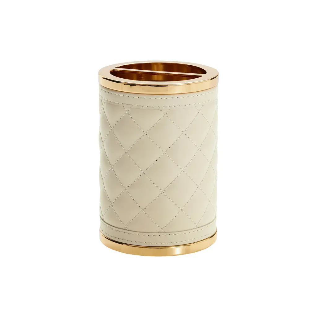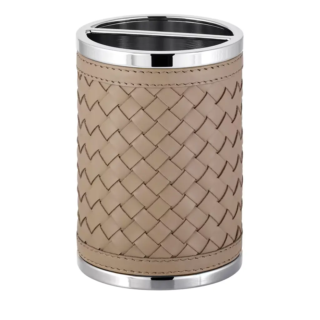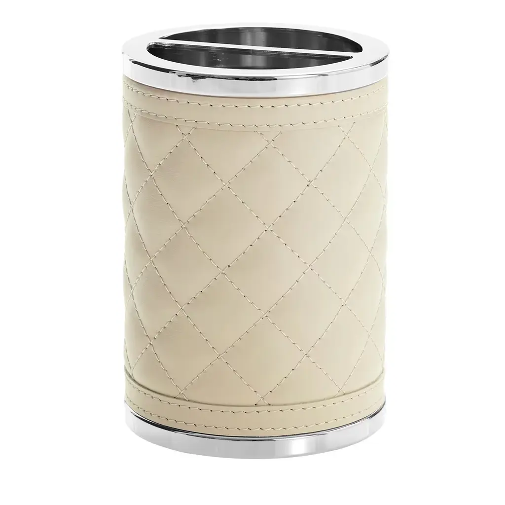 Stainless steel thermic bottle cooler covered with quilted herringbone leather. Elegant lines meet a timeless style through a perfect construction and impeccable craftsmanship.