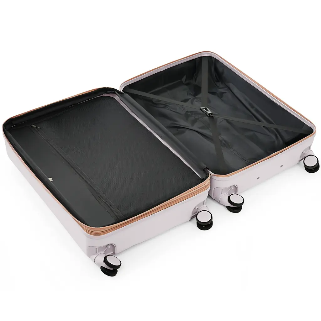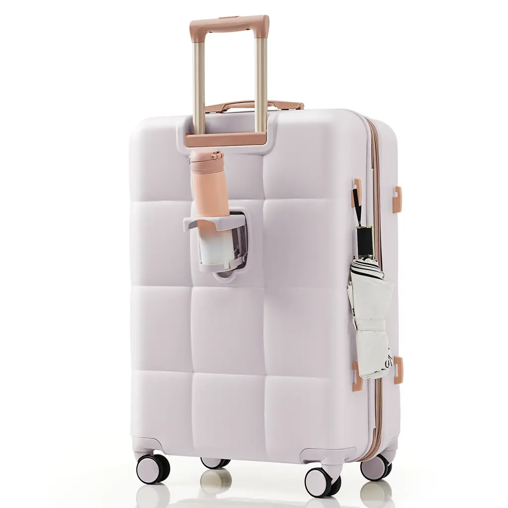 With 360° spinner wheels, a built-in cup holder, and side hooks, this luggage set provides hassle-free mobility and thoughtful extras to free your hands while traveling. The interior features mesh compartments and tie-down straps for organized packing, making this set perfect for business or leisure trips.Features:Quick Glance Points: