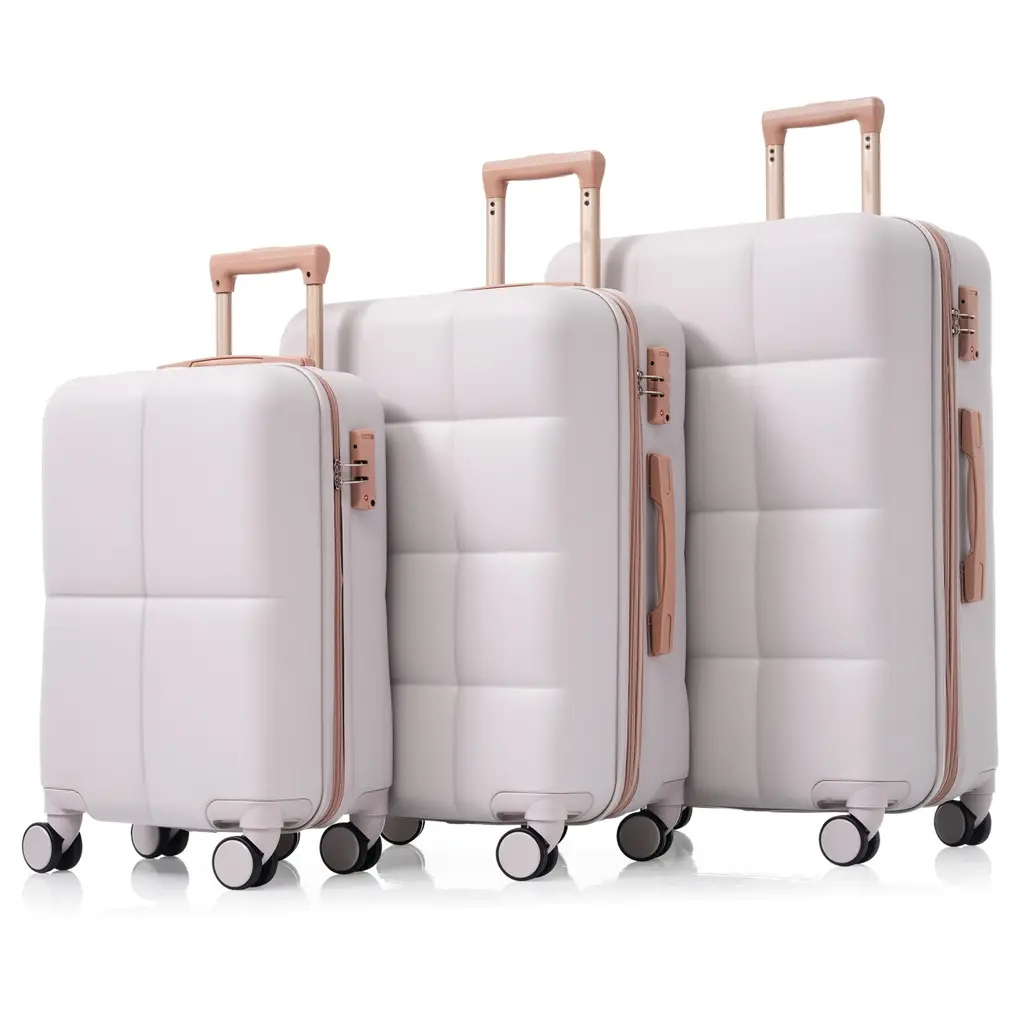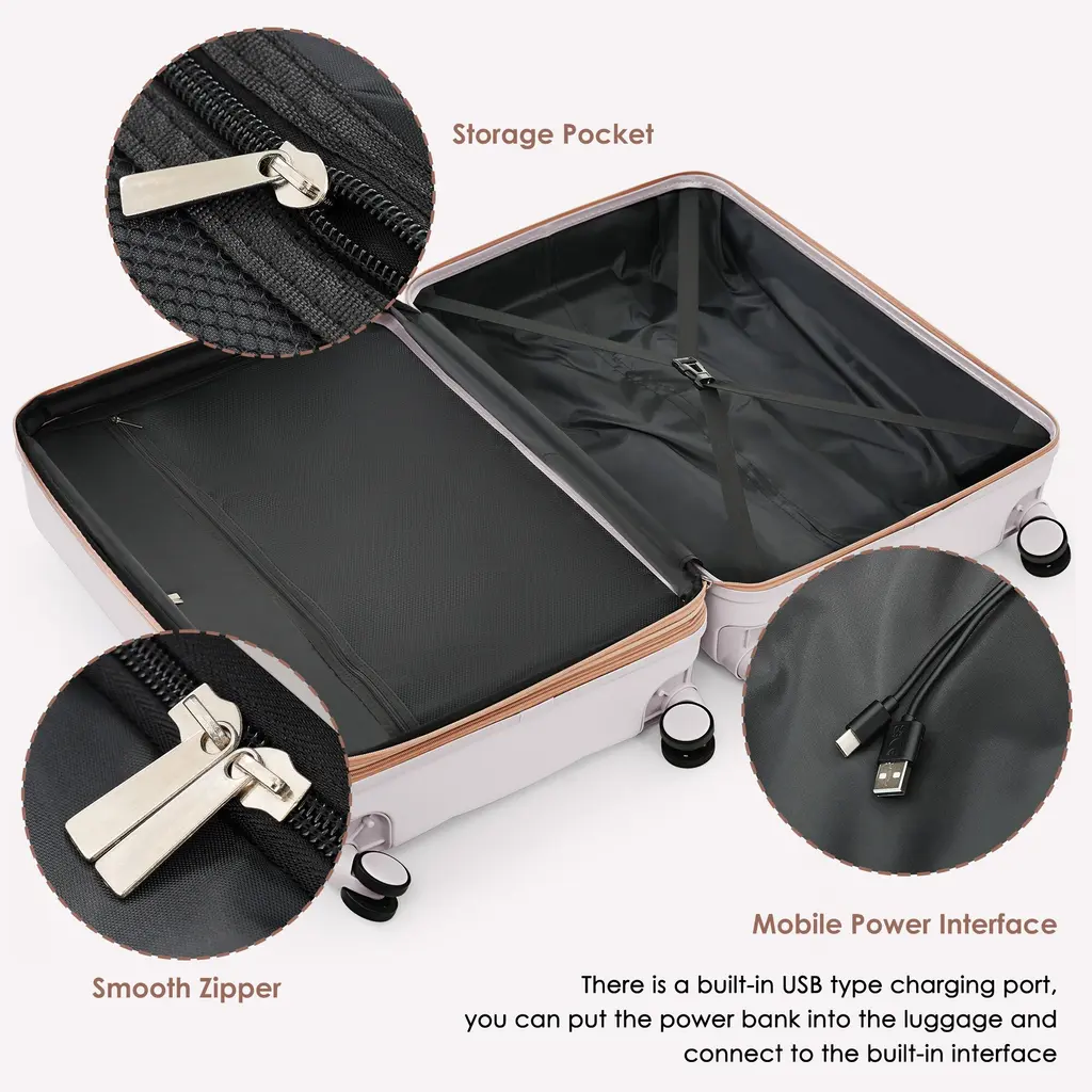 Merax 3 Piece Carry-On Luggage Set, Abs Hard Shell Lightweight Durable Luggage W/usb Port, Cup Holder And Spinner Wheels - Grey