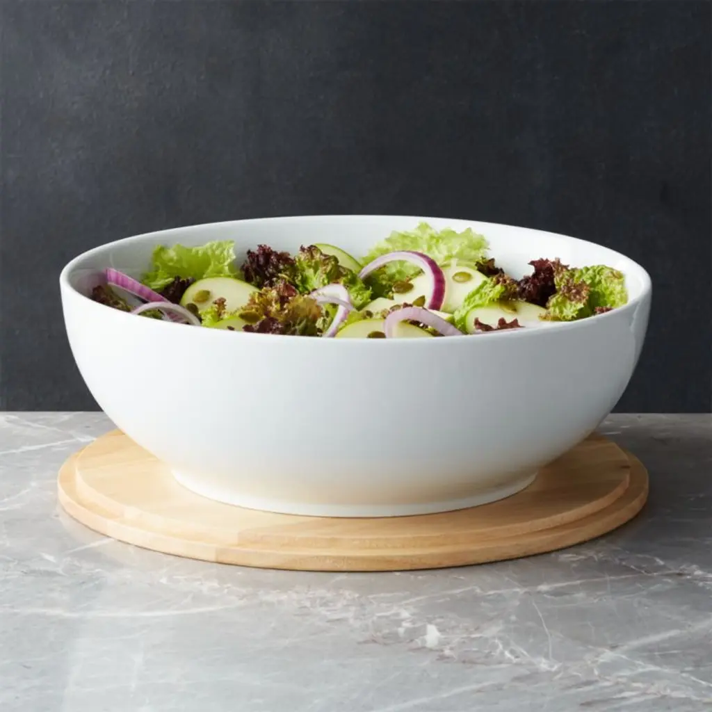 Striking in its simplicity, this white porcelain bowl is topped with a sustainable wood lid, mixing effortlessly with our other white and wood serving pieces and table settings. The lid keeps dishes warm until it's time to serve, making it perfect for dinner parties and potlucks. The bowl cleans up easily in the dishwasher once the feasting is complete.