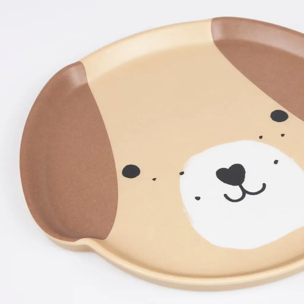 One plate, many fun mealtimes! This charming melamine plate features an adorable puppy face design, combining playful style with everyday practicality. This delightful design is sure to delight little ones and grown-ups alike, making mealtimes more engaging whether you're indoors or out. It's perfect for puppy parties, picnics, or adding a smile to snack time. Lightweight and just the right size for little hands, it's ideal as a kids plate or even a cute option for grown-up nibbles. It makes a fantastic gift too for a special someone who loves small plates and puppies. Not suitable for the microwave or foods over 158F. Dishwasher safe up to 149F.