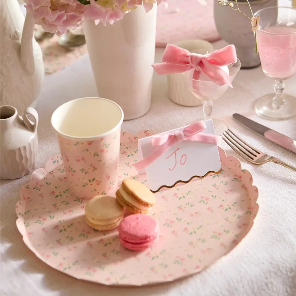 Add effortless elegance to your celebration with these beautiful floral paper plates, featuring ditsy floral clusters in four vintage color ways of pink, peach, mint, and blue. The co-ordinating colors are on the back of these side plates too, to give a really gorgeous effect and delightful surprise. These soft pastel shades work beautifully to complement any party theme and color scheme. Perfect as small plates for serving sweet or savory delights, they're ideal for both kids and adults, making them a stylish choice for any event.