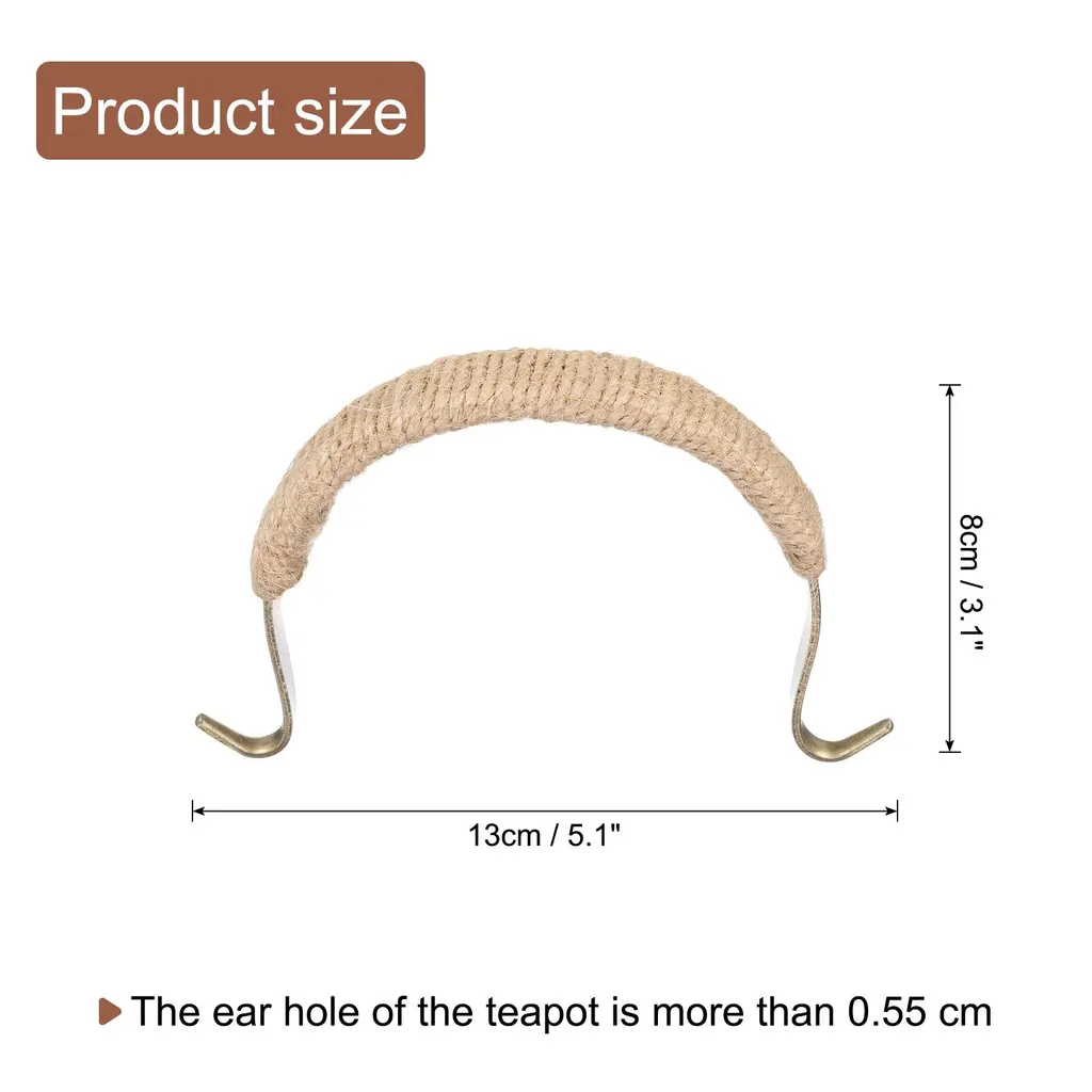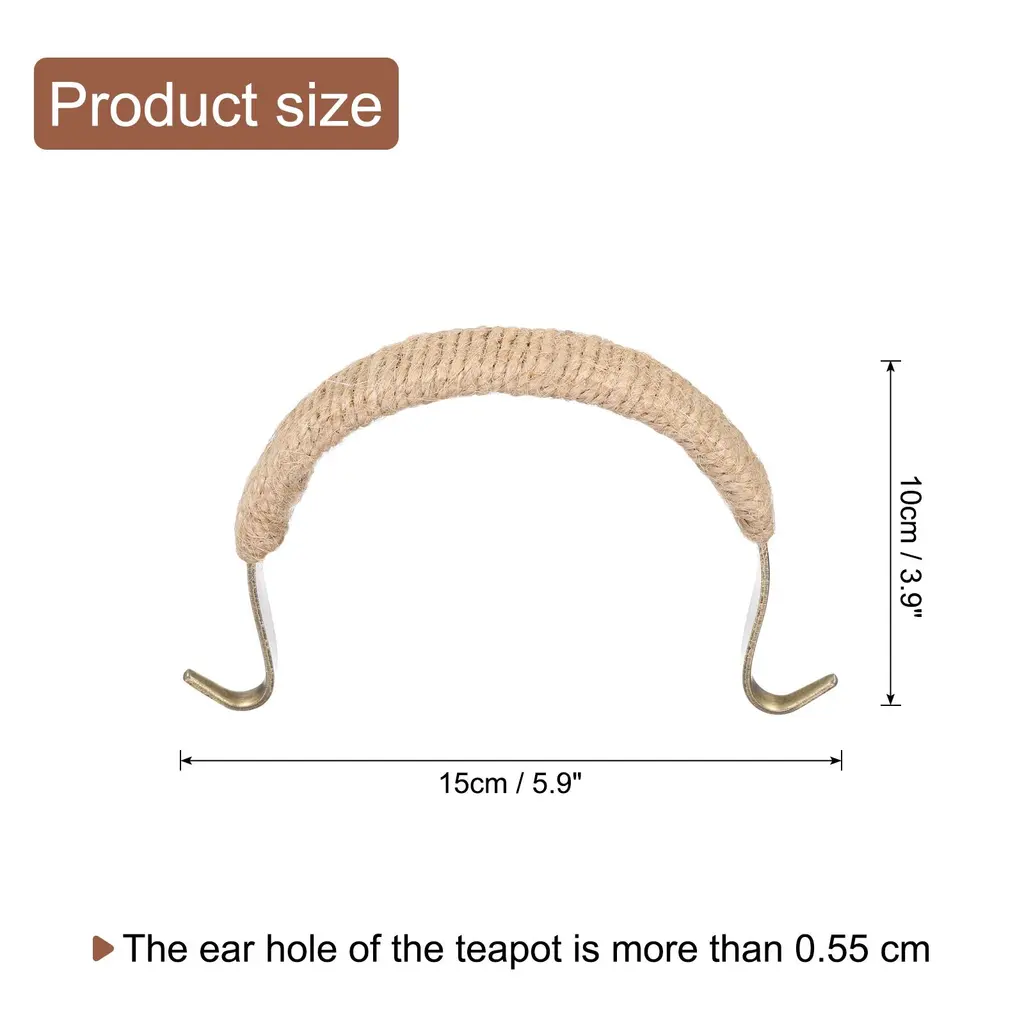 Metal Tea Pot Handle Rope Wrapped Handle For Teapot - Black - 3.5 - 4.5 Inch
