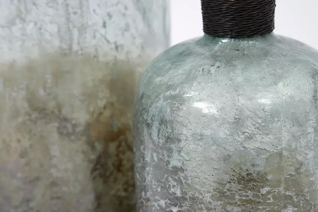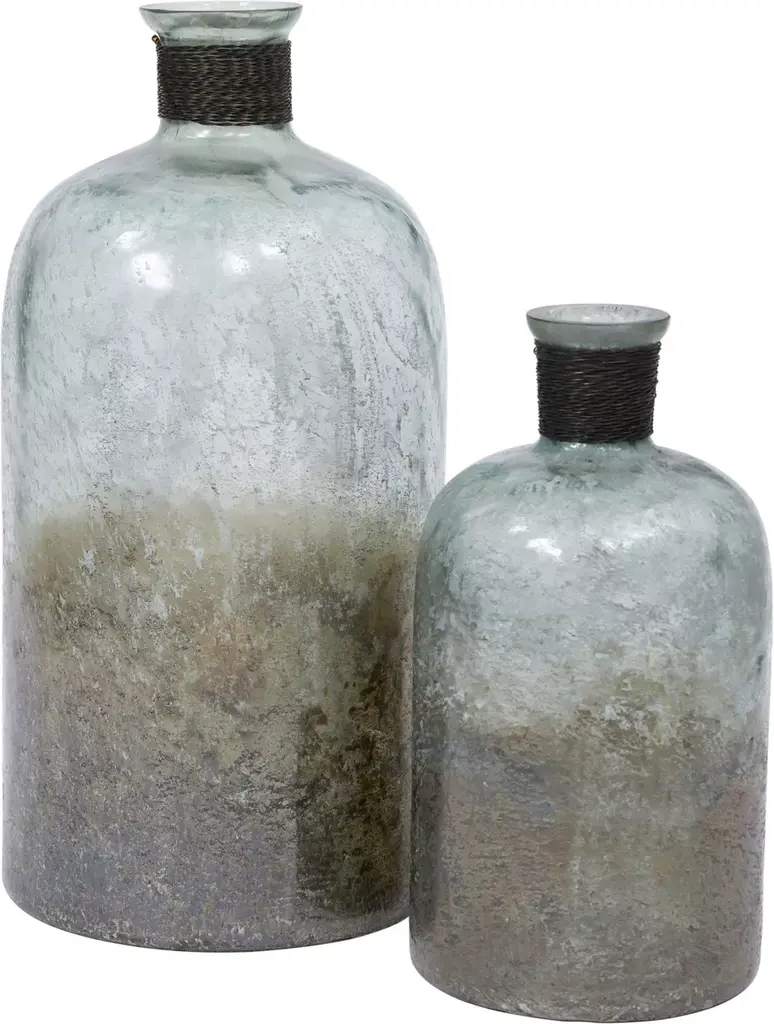 Fanciful in a distressed, light-catching grey finish, our Metallic glass bottles shimmer and shine in 10 and 15-inch sizes. Style on your entryway table for a glamorous and inviting finishing touch. Please select your size before adding to cart.