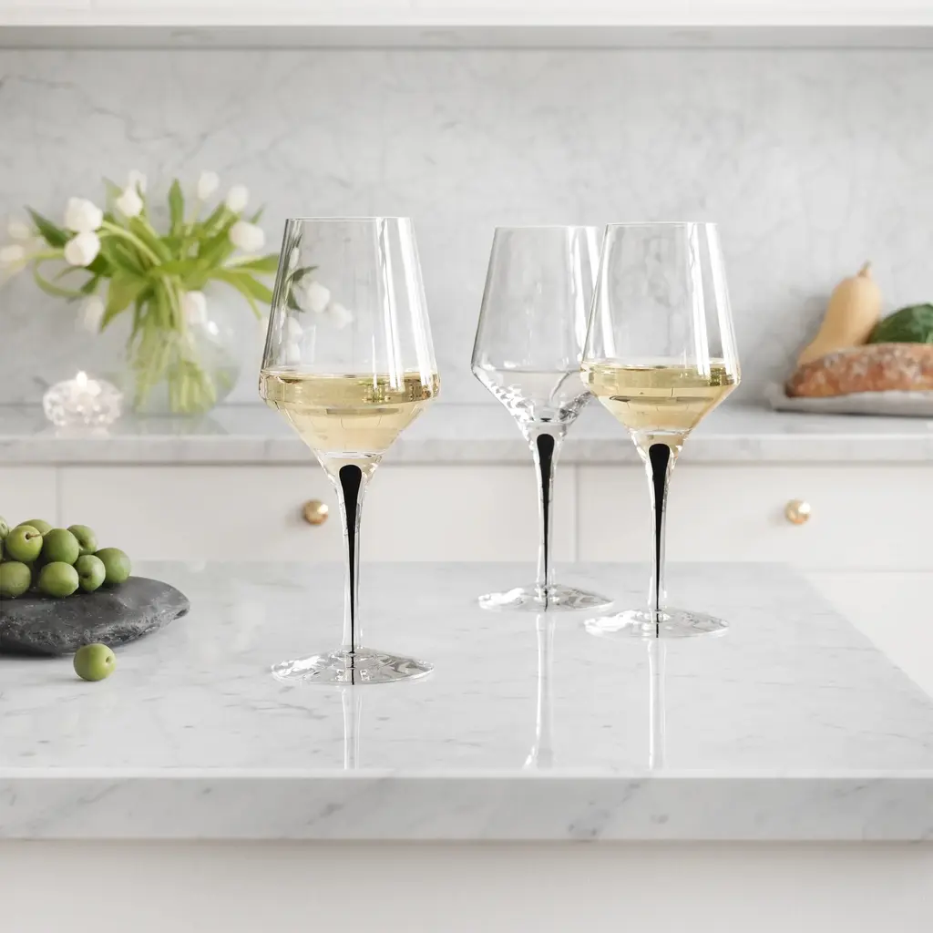 Designed with the modern home and stylish socializing in mind, this drinkware is highlighted by a hint of black detail at the base.