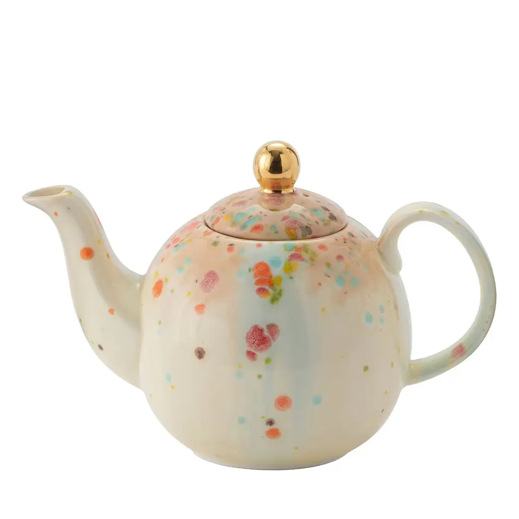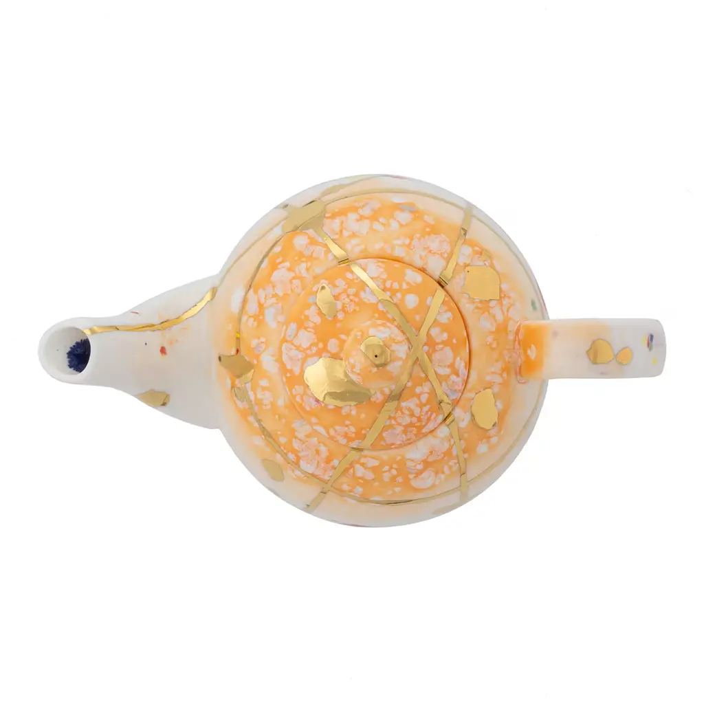 The Miami Teapot from the Florida collection, launched in 2023, embodies luxury and cheer. Inspired by the vibrant spirit of Florida, this teapot features a bright Miami orange that evokes the lively atmosphere of its famous beaches and sunsets. The design showcases a lightly colored center adorned with playful multicolor dots and golden rays, adding a whimsical touch.
