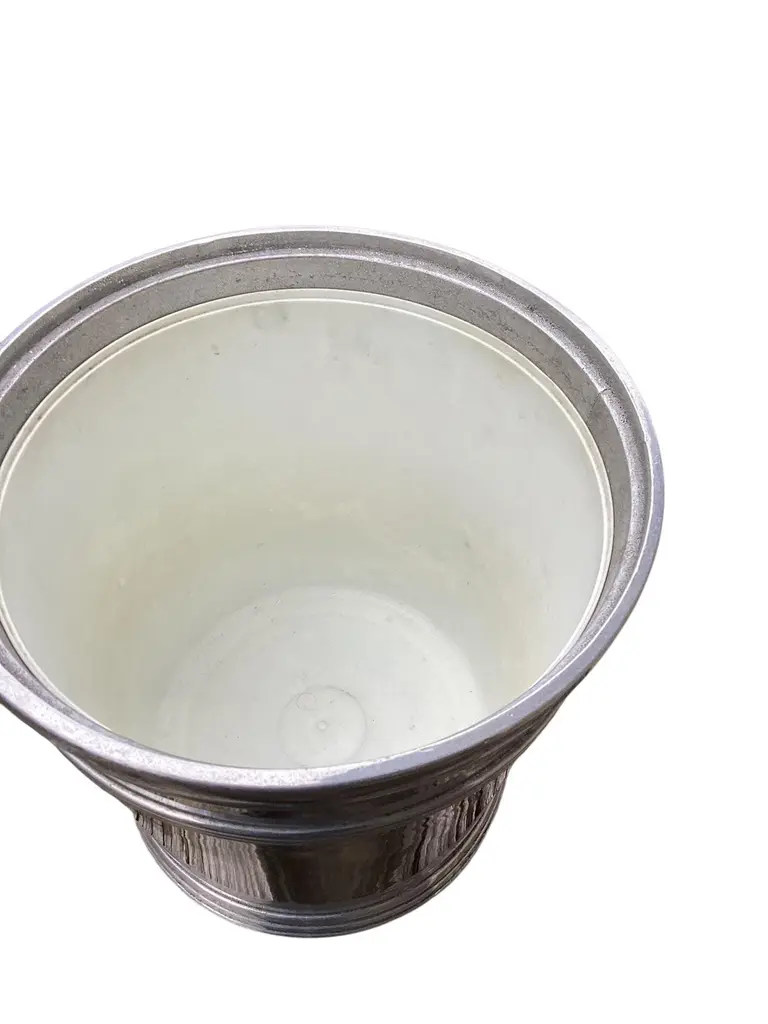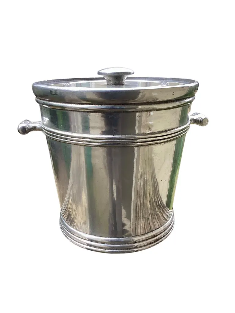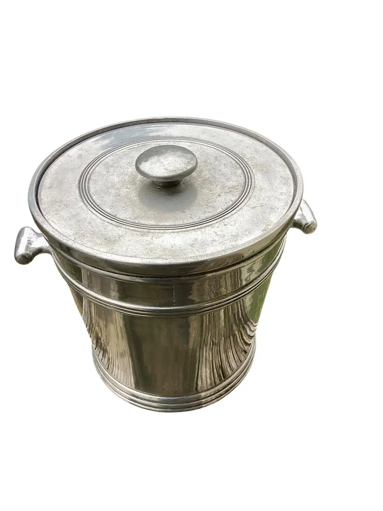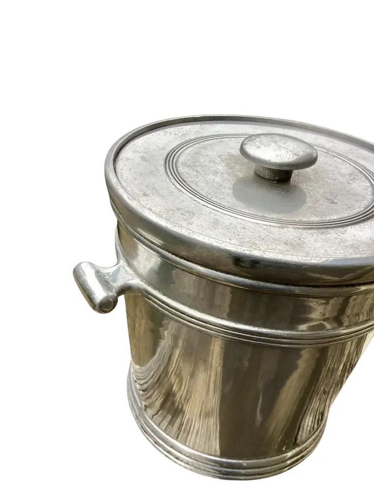 Mid Century Cast Pewter Ice Bucket by Wilton-Columbia,PA. Retain original plastic liner and lid.