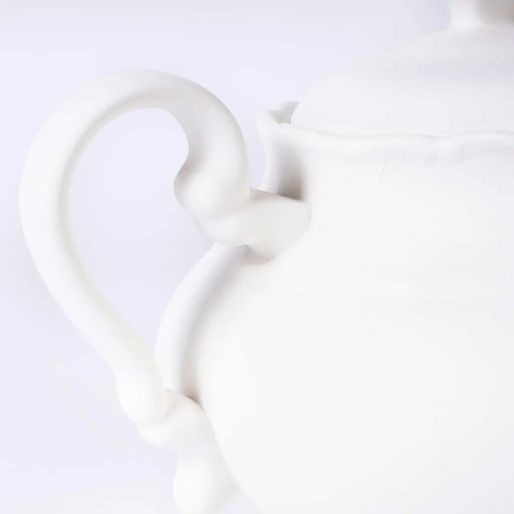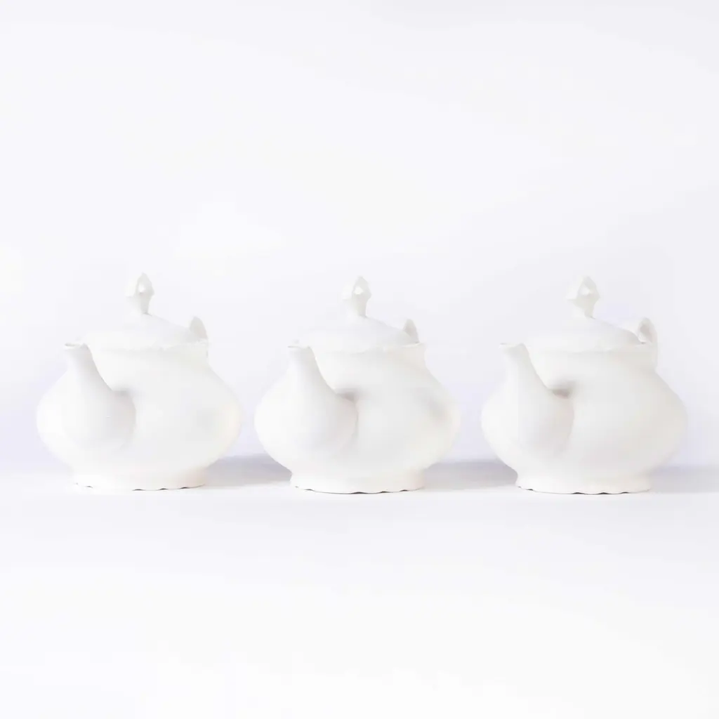 Mid century Czech new old stock raw ceramic teapotMid century Czech new old stock raw ceramic teapot. This white raw ceramic teapot was made in Czech in the 19th Century. We recently cleared a ceramics factory in the Czech republic, it closed in the eighties and had been sitting sealed up since then. We bought all the remaining ceramic production, basically glazed but unfired. These are therefore sold as decorative items and we love them for their unglazed matt look, please just note they have a stable but slightly dusty surface so for decorative use only. One of our favourite finds. Excellent condition they have never been used. Listing is for one single majestic teapot.Workshop reportOur workshop team inspect every product and carry out any needed repairs to ensure that everything leaves us serviced and maintained ready for many more years of life. All of our vintage products show the rich beauty and history of their life with the knocks and bumps of many years of use and we try to minimise restoration to keep every piece as original as possible.