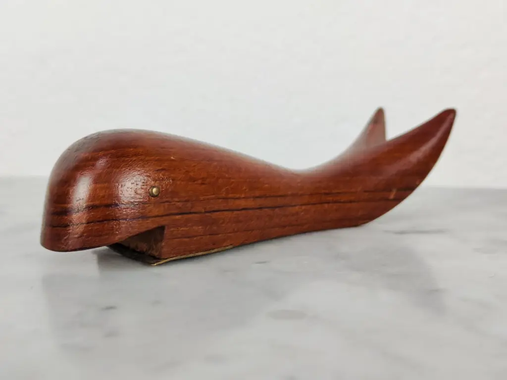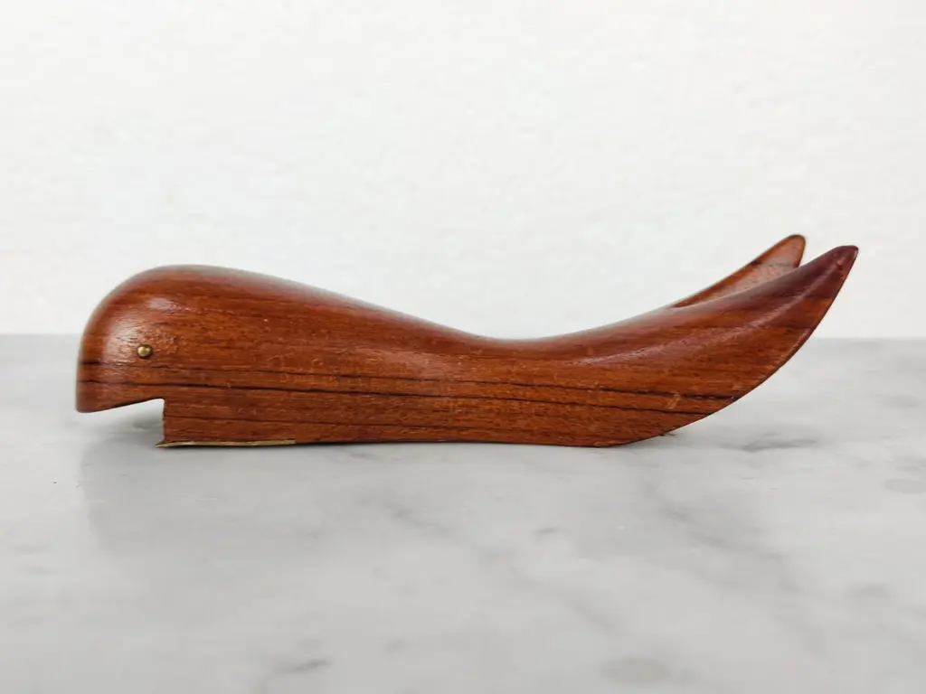 Mid Century Modern Danish Teak Wood Bottle Opener Shaped As Whale, Denmark 1960s
