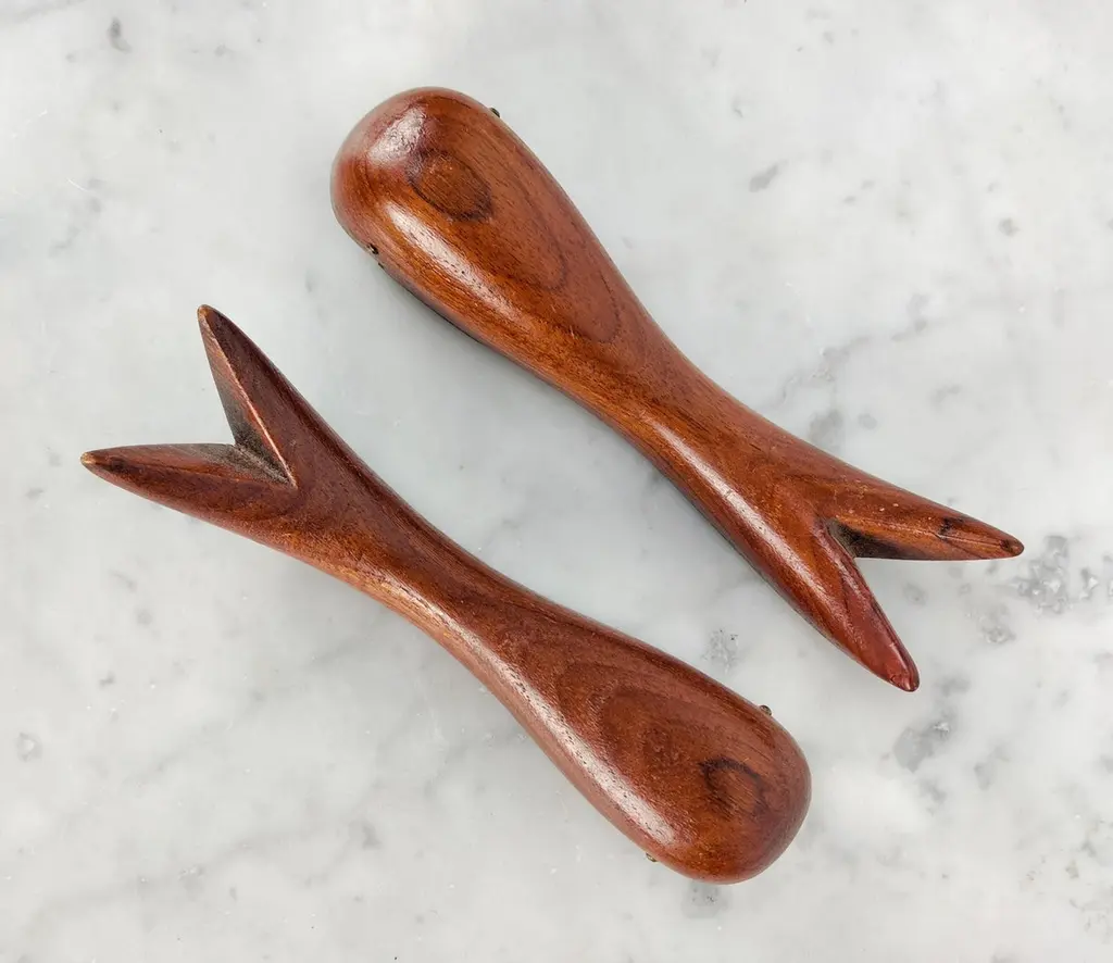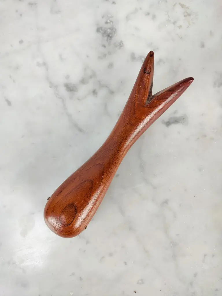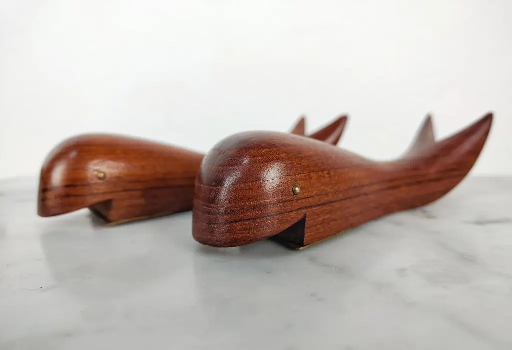In this listing you will find Danish Mid Century Modern bottle openers made of teak wood. They feature shape of the whale, with brass details as their mouth used to open the bottles. Exquisite and very elegant craftsmanship. Good vintage condition with small signs of time and use.If you have any additional questions regarding this piece, please feel free to contact me.