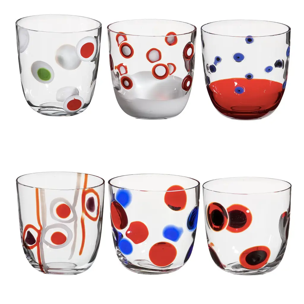 Midcentury Ombre Polka Dot Glasses, S/7