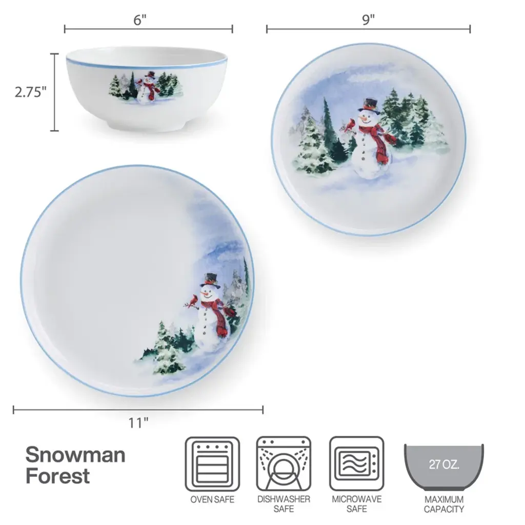 Mikasa Snowman Forest 12-Piece Lightweight Chip-Resistant Bone China Dinnerware Set, Service For 4