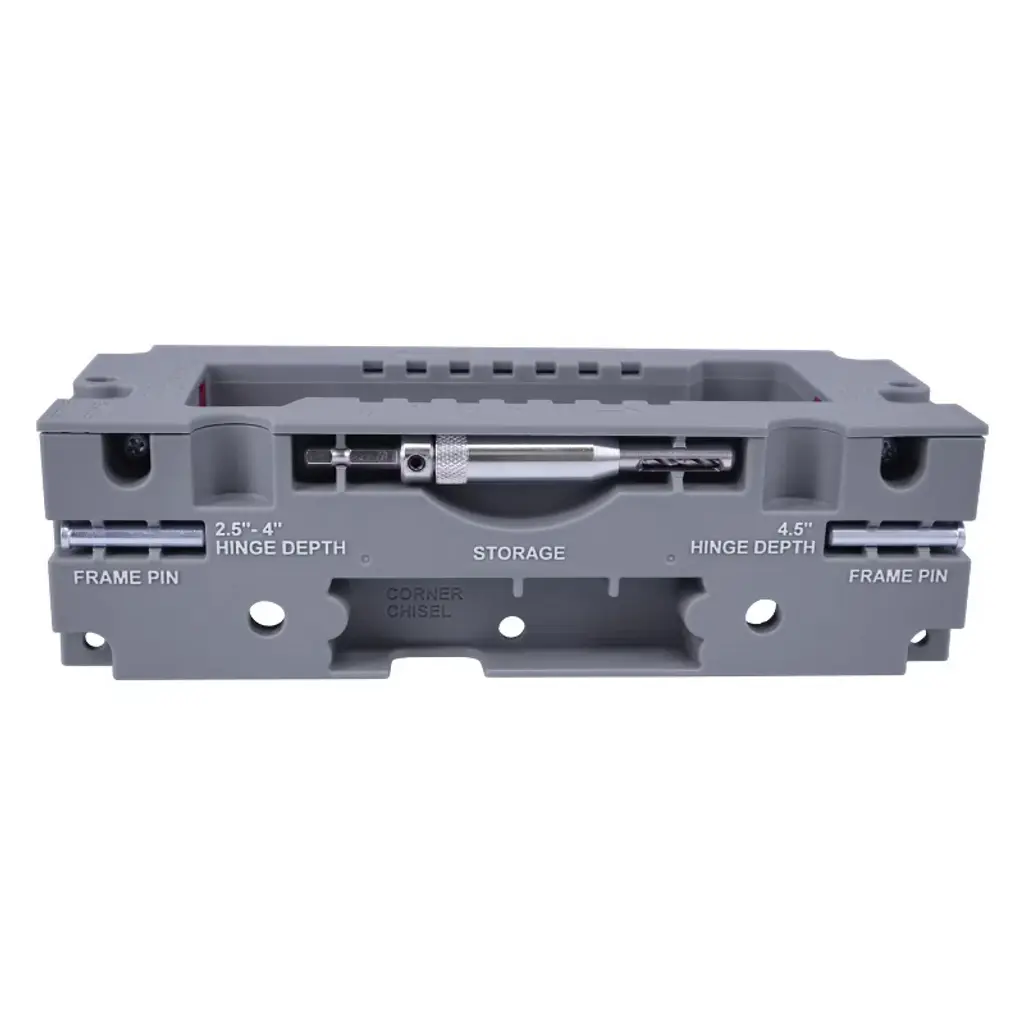 The HingeJig Plus, by Milescraft, is a one-stop solution for door installation work. The jig routs and installs door and jamb / frame hinges, latches, and strike plate mortises quickly and accurately. The included bonus PinDoctor even assists in removing your old door. The dual-clamping design of the HingeJig Plus mounts quickly and holds firm to ensure cuts are clean and accurate. No need for screws or nails which can damage your door. Rout perfect hinge mortises in 2.5”, 3”, 3.5”, 4” and 4.5” sizing on both a door, or the frame! For Doors – Set appropriate backset plug setting and insert the adjustable spacer into the correct sizing slot facing the Door cavity, clamp, and route. On Frames, the HingeJigPLUS is reconfigured to clamp or mount to new or existing jambs and frames using the FRAME cavity. Included offset pins make sure that the spacing stays accurate and the width of the hinge mortise is just right. Built-in depth setting guides to ensure proper routing depth on smaller or larger hinges. The design of the HingeJigPLUS also makes it easy to change between 1/4” and 5/8” radius mortises. Flip the radius inserts and spacer to the curved side for 5/8” hinges, or the flat side for 1/4” hinges. The HingeJig Plus includes drop in templates to rout latch plate and strike mortises. Simply remove the adjustable spacer, set the backset plug to latch, and drop in a template The strike template is used when the jig is in the Frame position, and uses the index pins to set correct distance.