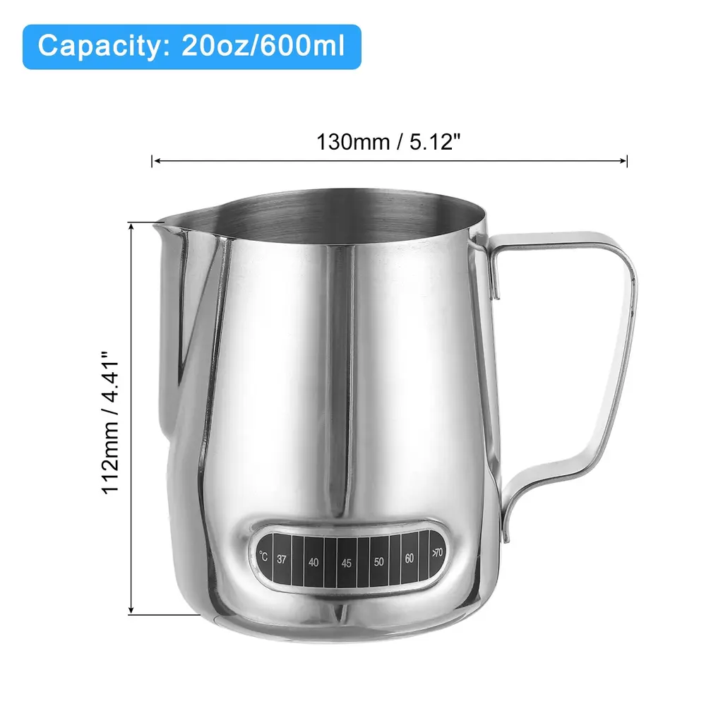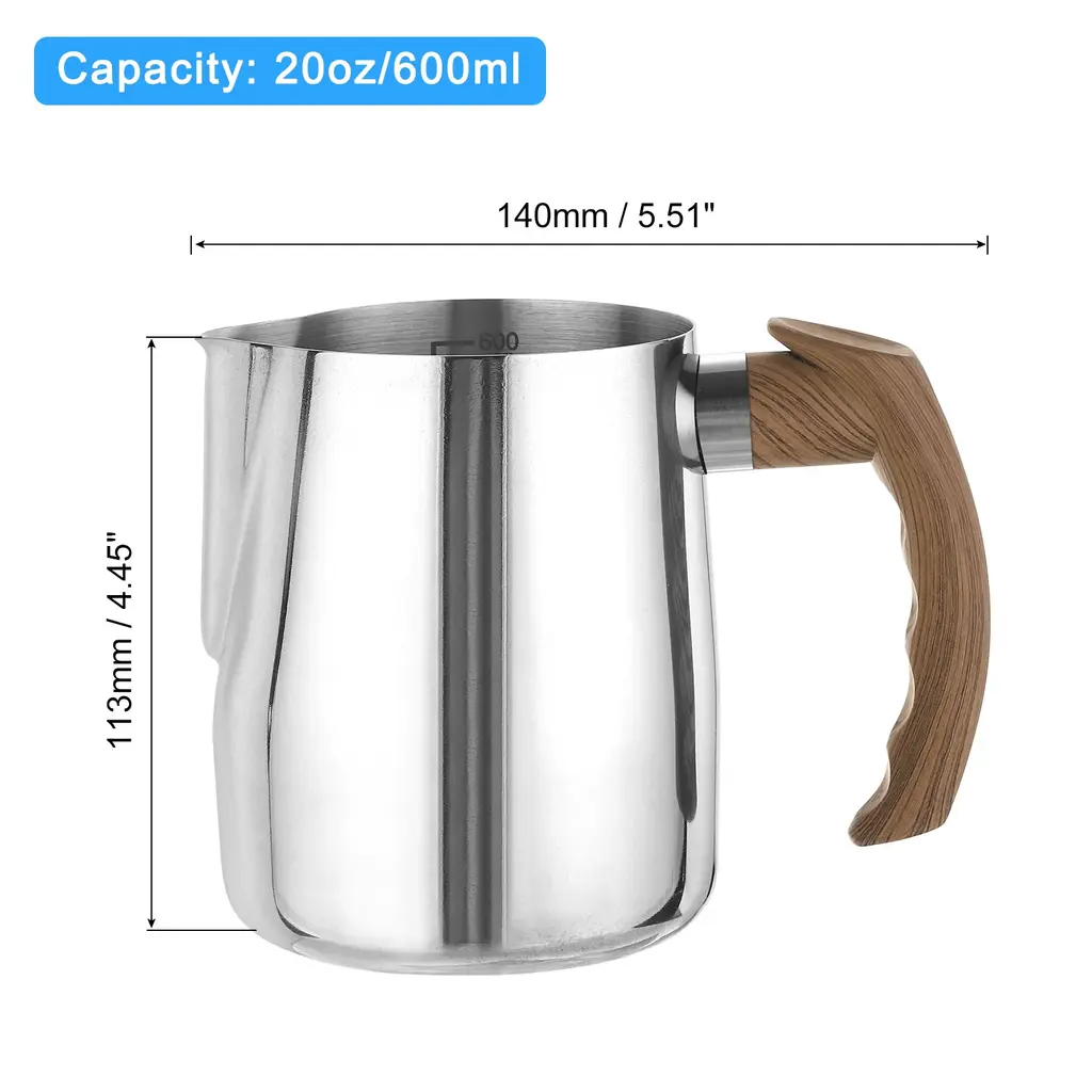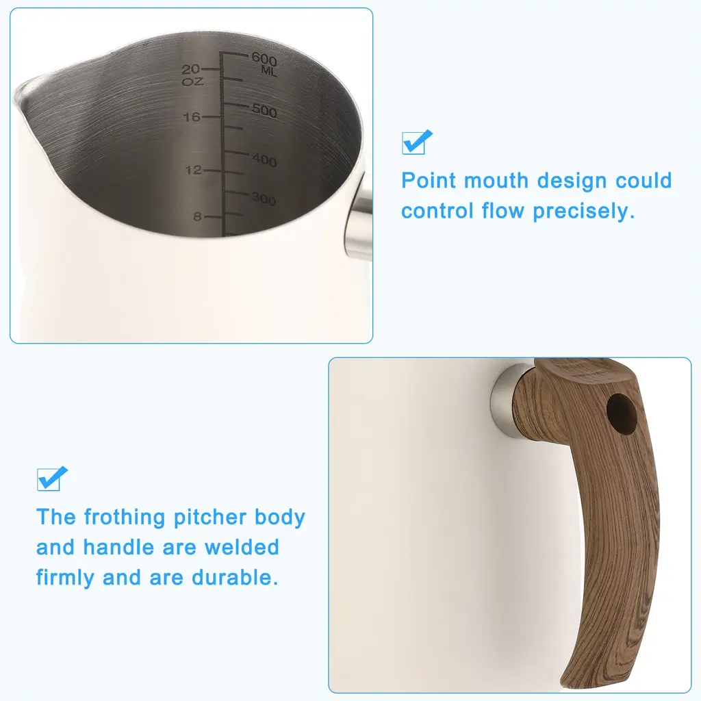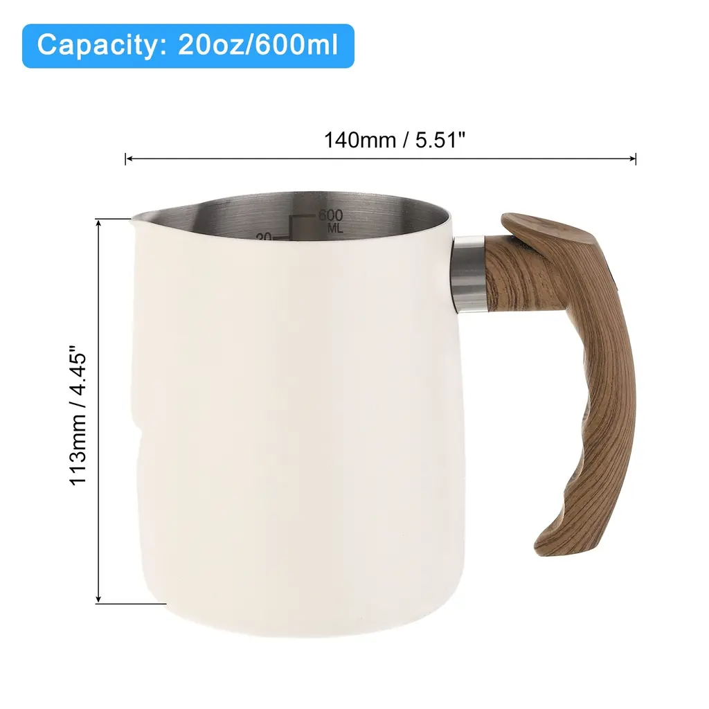 Milk Frothing Pitcher, 20oz/600ml With Handle For Home Cafe - White
